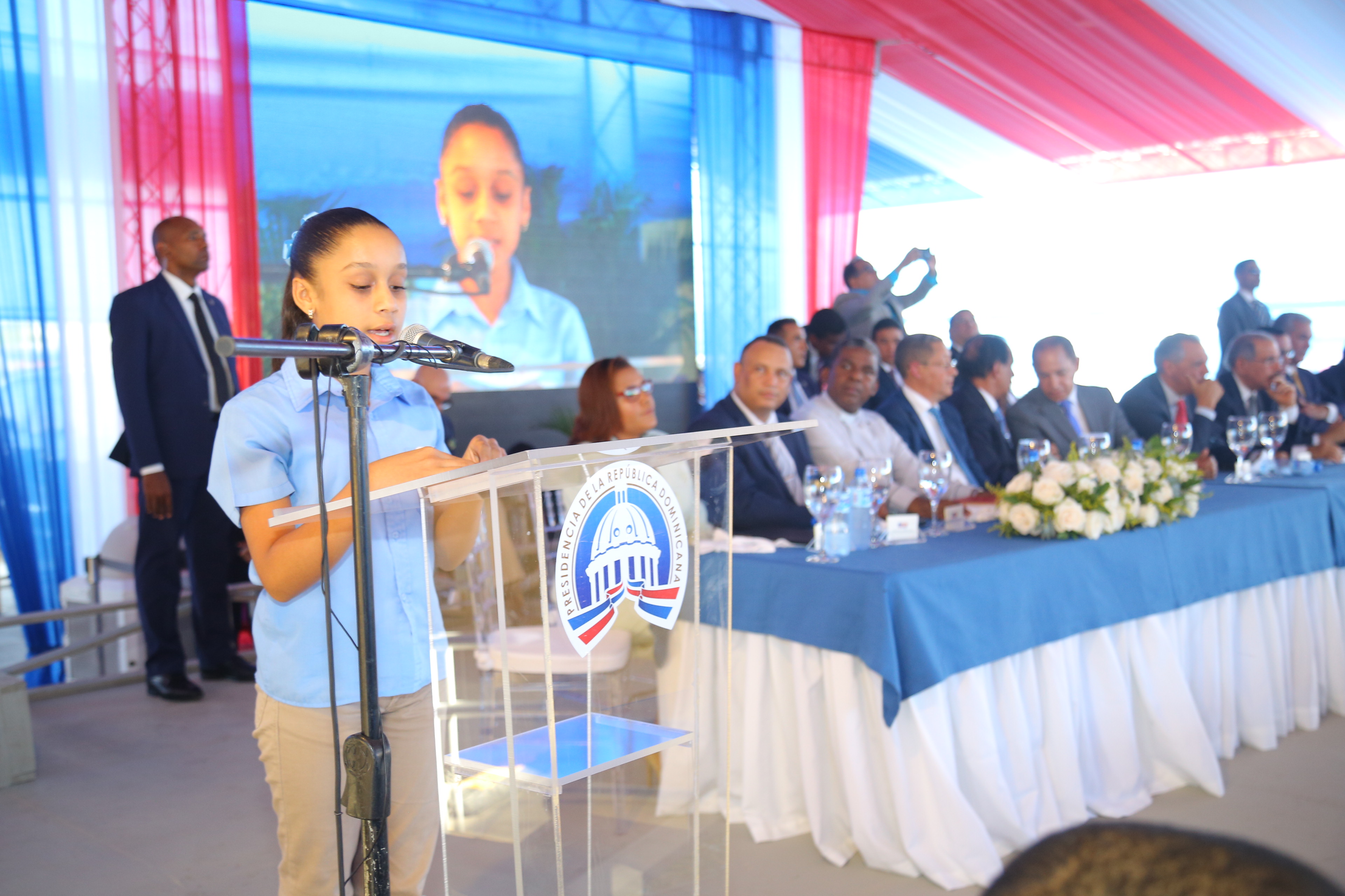 La estudiante Yorlenys Ortíz Velázquez, agradece al presidente Danilo Medina, en nombre de sus compañeros la entrega de los nuevos centros educativos.