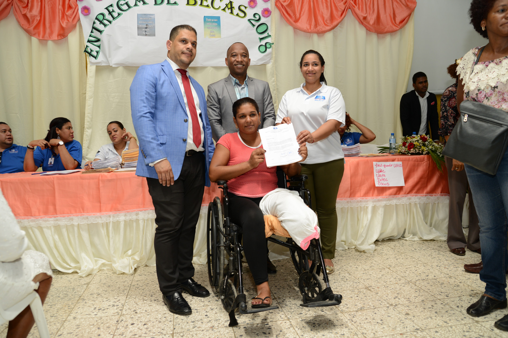 Acto de entrega de becas a jóvenes Santo Domingo Norte y Monte Plata, en áreas como salud, ciencias, educación y tecnología, con el auspicio del Ministerio de la Presidencia y el MESCYT .