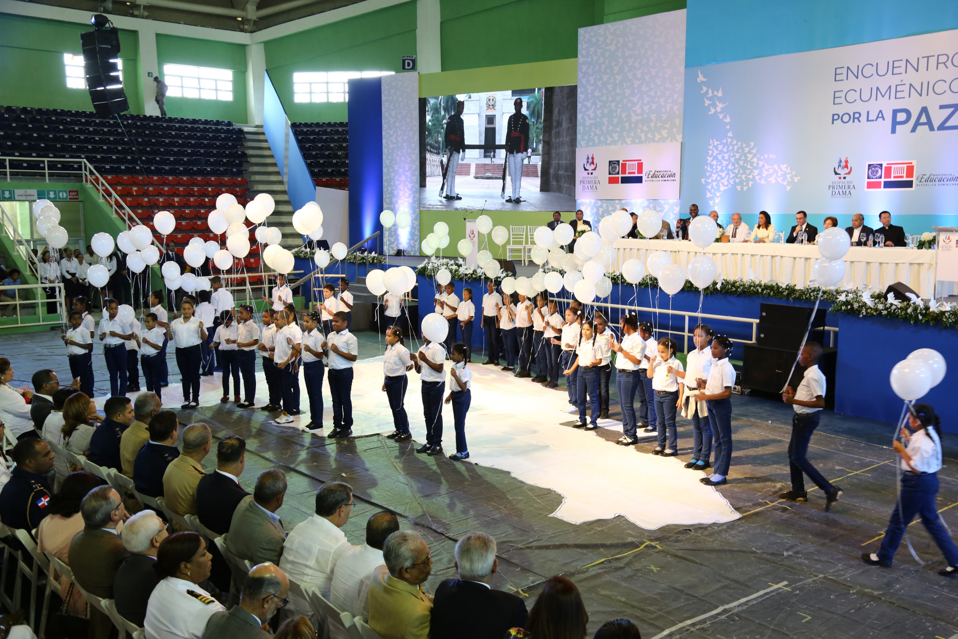 Encuentro Ecuménico realizado por el Despacho de la Primera Dama, en coordinación con el Ministerio de Educación y las iglesias católica y evangélica, celebrado hoy en el Pabellón de Voleibol, del Centro Olímpico Juan Pablo Duarte.