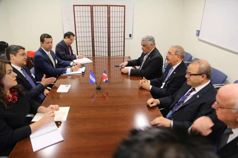 Reunión bilateral del presidente Danilo Medina con Juan Orlando Hernández, presidente de Honduras, realizada hoy en el marco de la Asamblea General de la ONU, en New York.