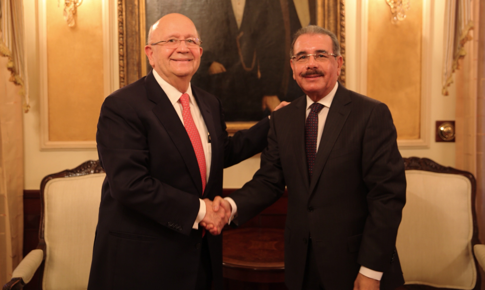 El presidente Danilo Medina junto a Carlos Morales Troncoso, ministro de Relaciones Exteriores, durante su visita al Mandatario donde le anunció su retorno a sus ocupaciones en el MIREX.
