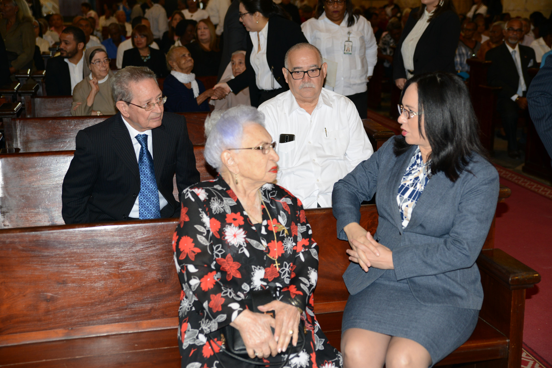 Participantes en la misa y otras actividades celebradas con motivo del Día Internacional del Adulto Mayor, encabezadas por la señora Nathalie María Hernández, directora del Consejo Nacional de la Persona Envejeciente (CONAPE).