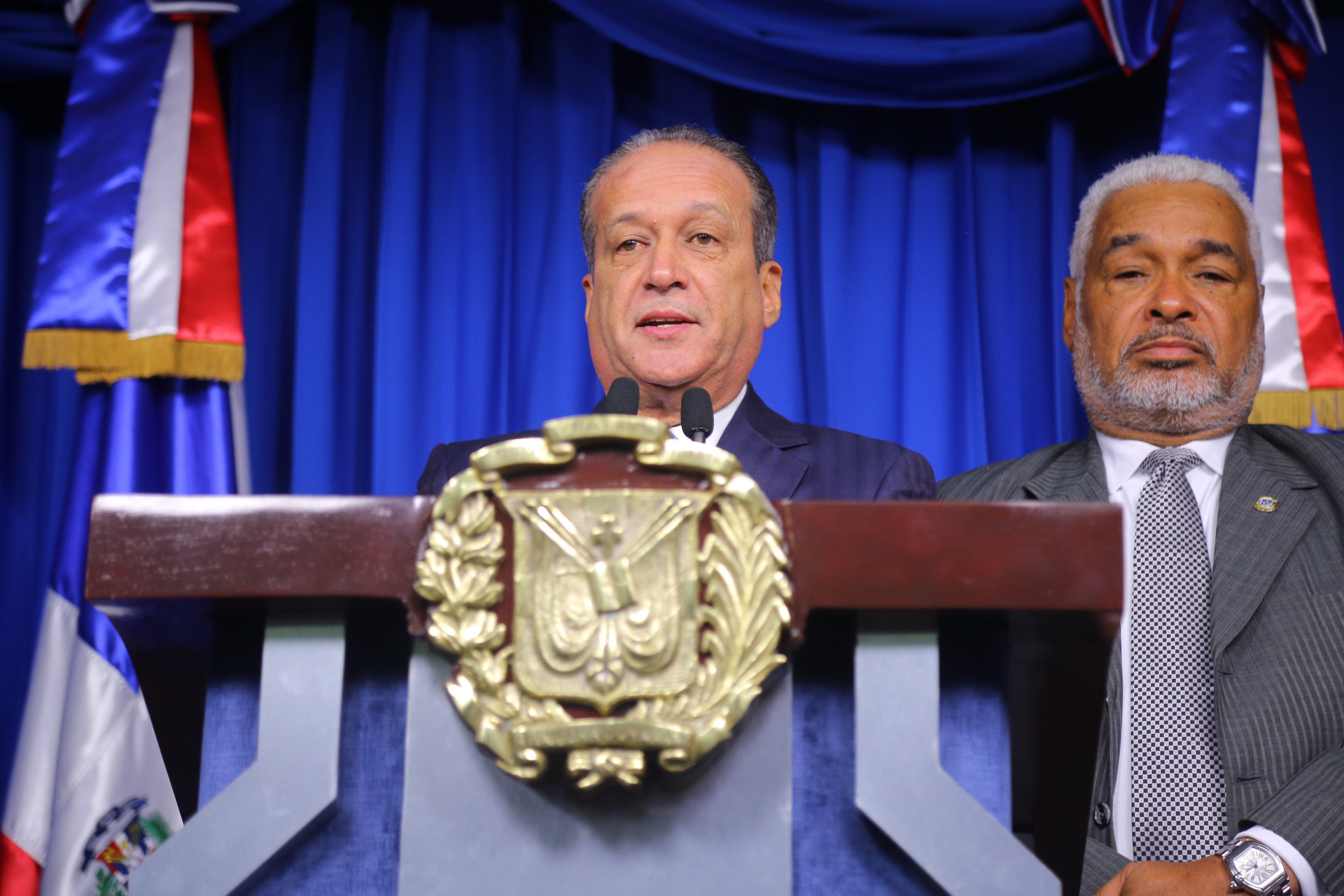 Presidente del Senado, Reinaldo Pared Pérez, durante rueda de prensa en el Salón Orlando Martínez del Palacio Nacional.