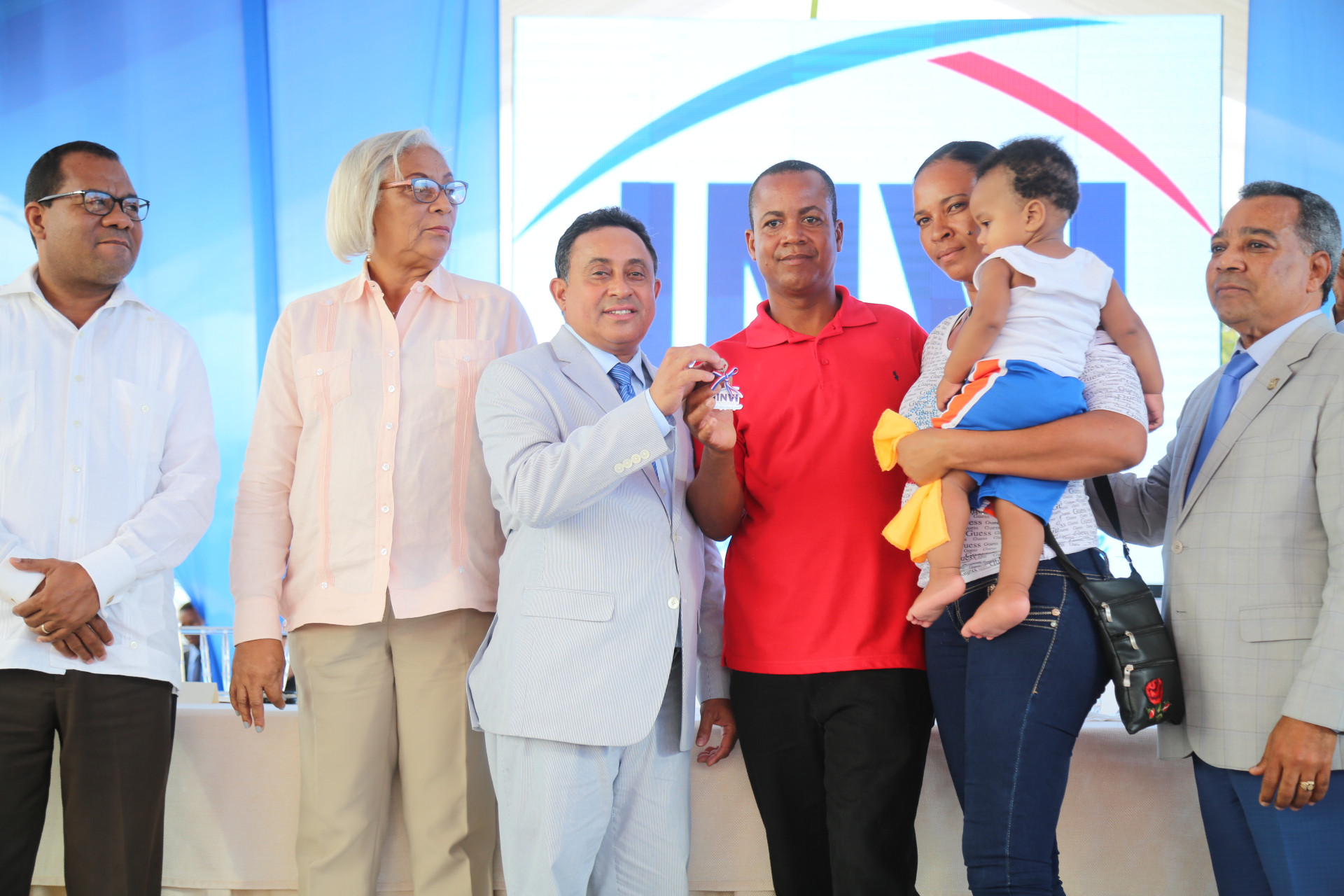 Esta tarde 128 familias de este municipio cumplieron el sueño de tener un techo digno y propio, al recibir los proyectos habitacionales INVI Villa Progreso Mella, donde tuvo lugar el acto de entrega, e INVI Villa Progreso La Colonia de Juancho, en Pedernales.