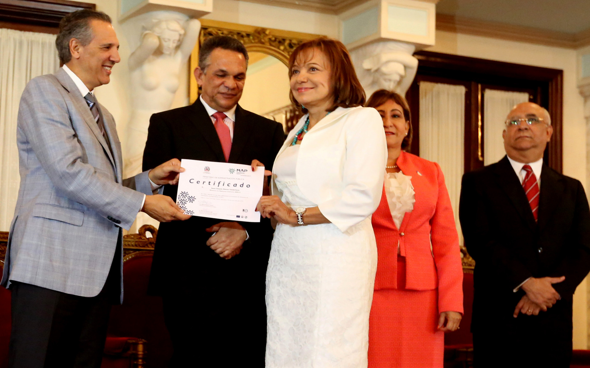 Acto de reconocimiento a 659 servidores públicos en su día, por meritos en beneficio del país, encabezado por Ramón Ventura Camejo, ministro de administración Pública y José Ramón Peralta, ministro Administrativo de la Presidencia, celebrado en el Salón Las Cariátides del Palacio Nacional. Foto: Presidencia República Dominicana Nota de prensa: presidencia.gob.do/noticias/gobierno-reconoce-servidores-...