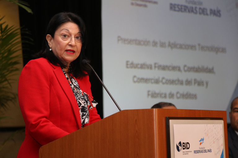 Participación de la presidenta ejecutiva de la Fundación Reservas, Rosa Rita Álvarez, durante su exposición en el evento.