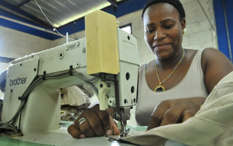 Operarias de la confección de uniformes escolares vistas en plena faena.