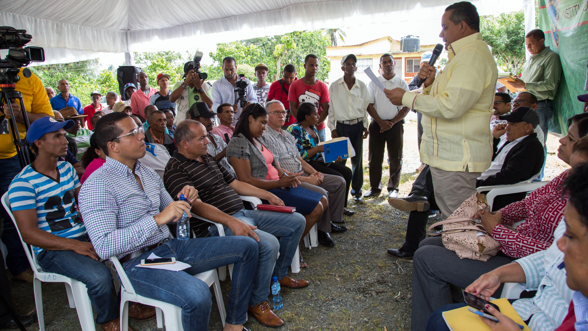 Reunión de seguimiento a la Visita Sorpresa 224, encabezada por el director general del Instituto Agrario Dominicano (IAD), Emilio Toribio, con los directivos de la Cooperativa de Ahorro, Créditos y Servicios Múltiples Bienestar y de la Asociación de Mujeres Unidas por el Bien Común (COPIEN), de La Gina, Yamasá. Foto: Presidencia República Dominicana Enlace noticia: presidencia.gob.do/noticias/gobierno-fomentara-siembra-de...
