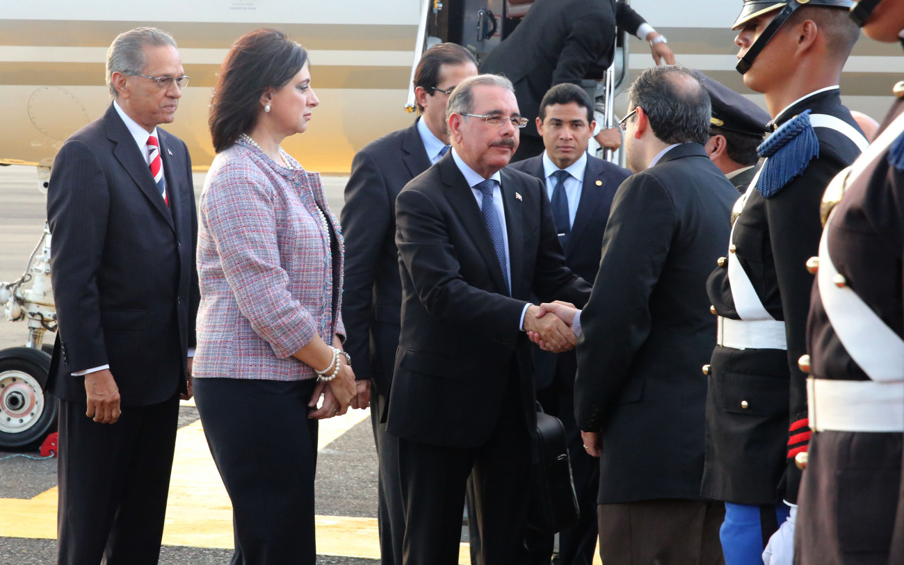 Junto al presidente Medina, conforman la delegación oficial de la República Dominicana los ministros de la Presidencia, Gustavo Montalvo; Administrativo de la Presidencia, José Ramón Peralta; de Interior y Policía, José Ramón Fadul y de Economía, Planificación y Desarrollo, Juan Temístocles Montás. Asimismo, el embajador dominicano en Honduras, José Osvaldo Leger, quien se incorporó a la misión en esta capital.
