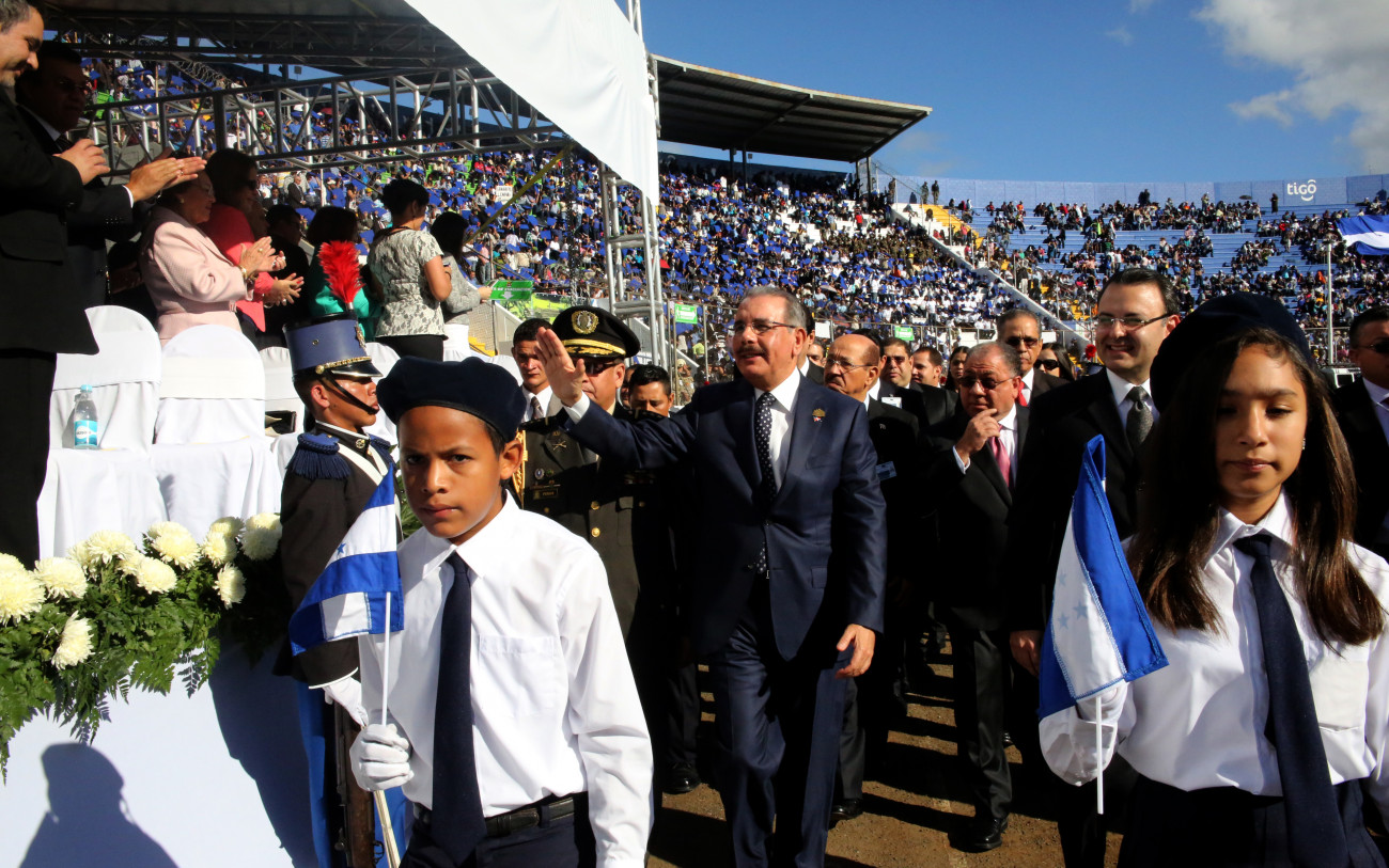 Comitiva dominicana encabezada por el presidente de la República Danilo Medina Sánchez, presentes durante el desfile de la toma de posesión de Juan Orlando Hernández Alvarado, nuevo presidente de Honduras.