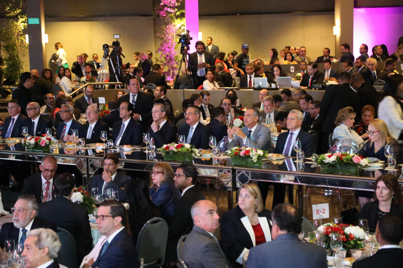 La Asociación Dominicana de Zonas Francas (ADOZONA) reconoció al presidente Danilo Medina por el apoyo brindado impulsando el crecimiento sostenido del sector, posicionando el país como destino de excelencia mundial para actividades de manufactura y servicios globales. 23 de octubre de 2018. EM