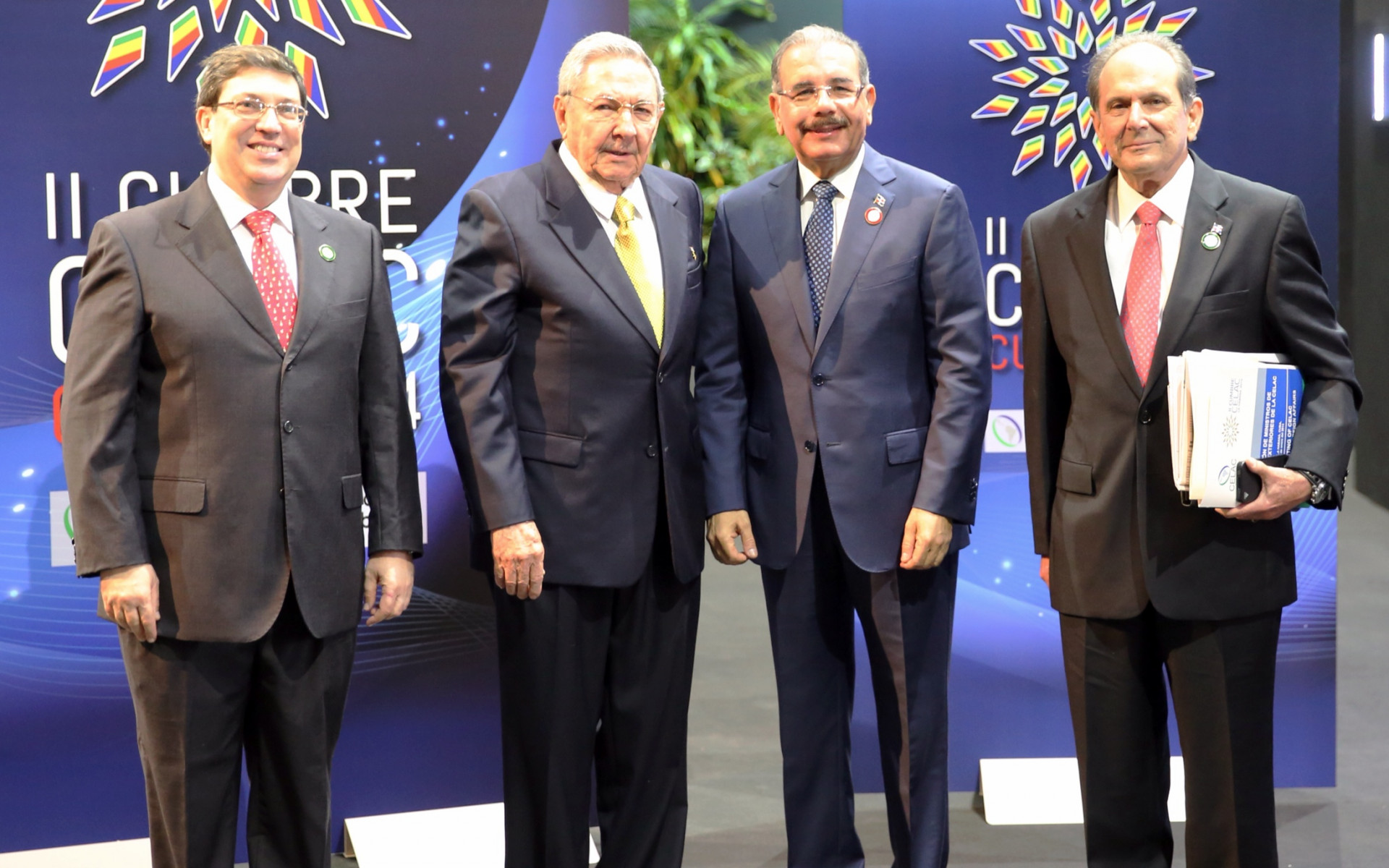 A su llegada al centro de exposiciones PABEXPO donde se desarrolla el encuentro internacional, el presidente Danilo Medina fue recibido por el presidente cubano Raúl Castro y su ministro de Relaciones Exteriores Bruno Rodríguez. Figura además, José Manuel Trullols, viceministro de Relaciones Exteriores de la República Dominicana.