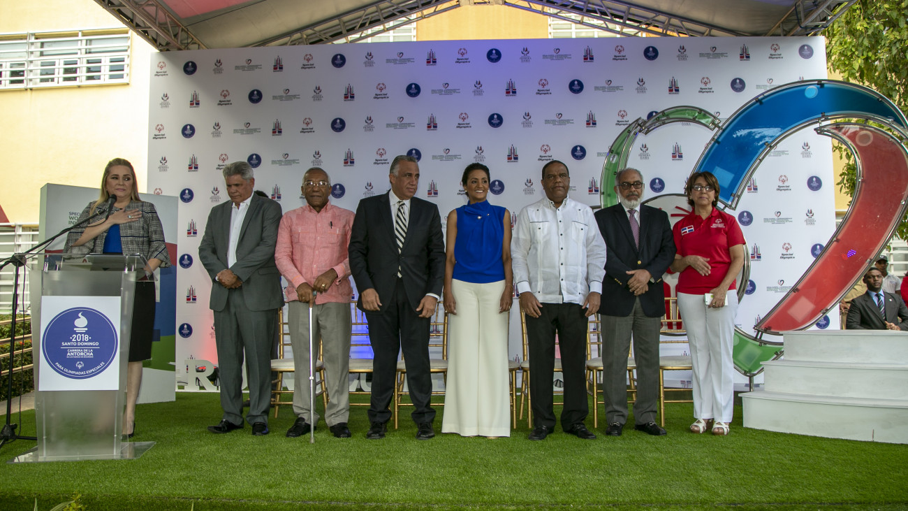 El acto estuvo encabezado por la primera dama de la República, Cándida Montilla de Medina, en la explanada frontal del edificio del Ministerio de Deportes, en el Centro Olímpico Juan Pablo Duarte.