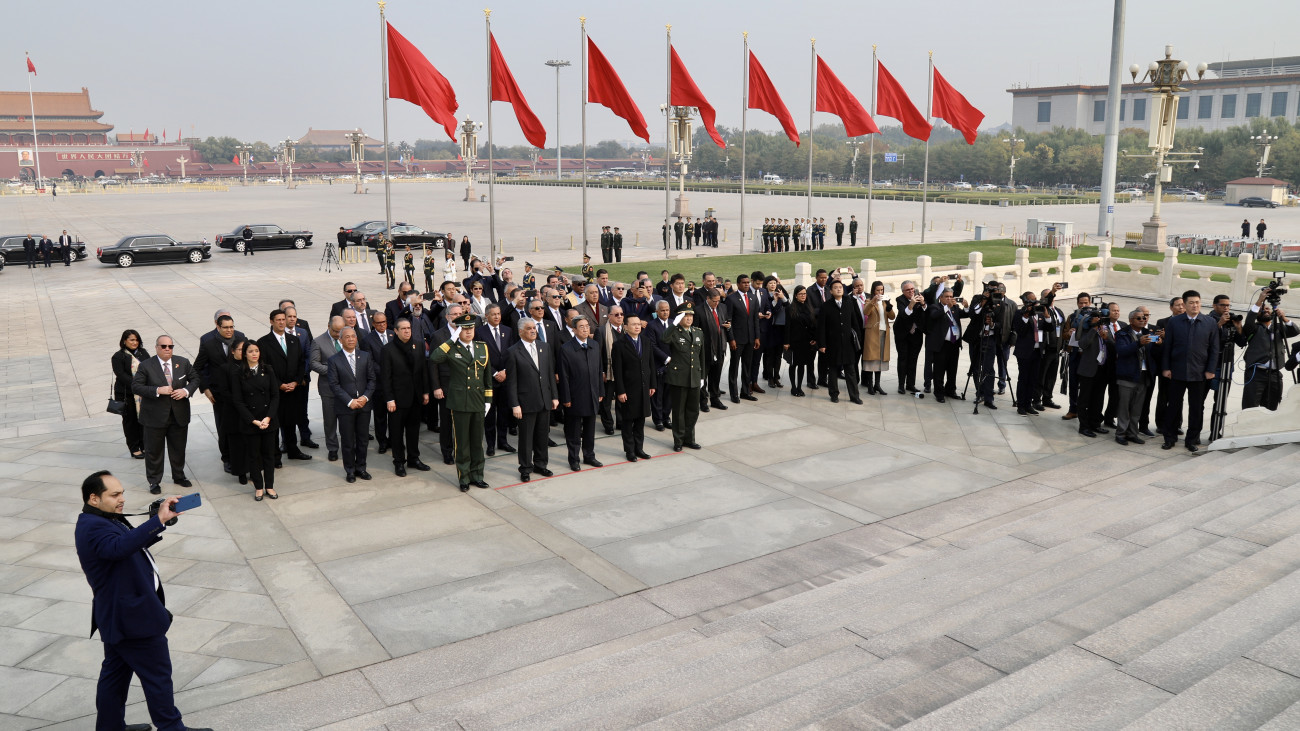 Danilo Medina inicia agenda en República Popular China con ofrenda floral en Monumento Héroes del Pueblo en Plaza de Tiananmén