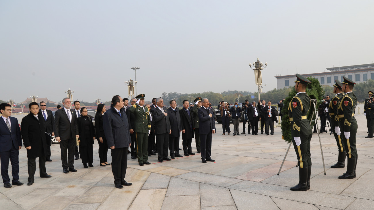 Danilo Medina inicia agenda en República Popular China con ofrenda floral en Monumento Héroes del Pueblo en Plaza de Tiananmén