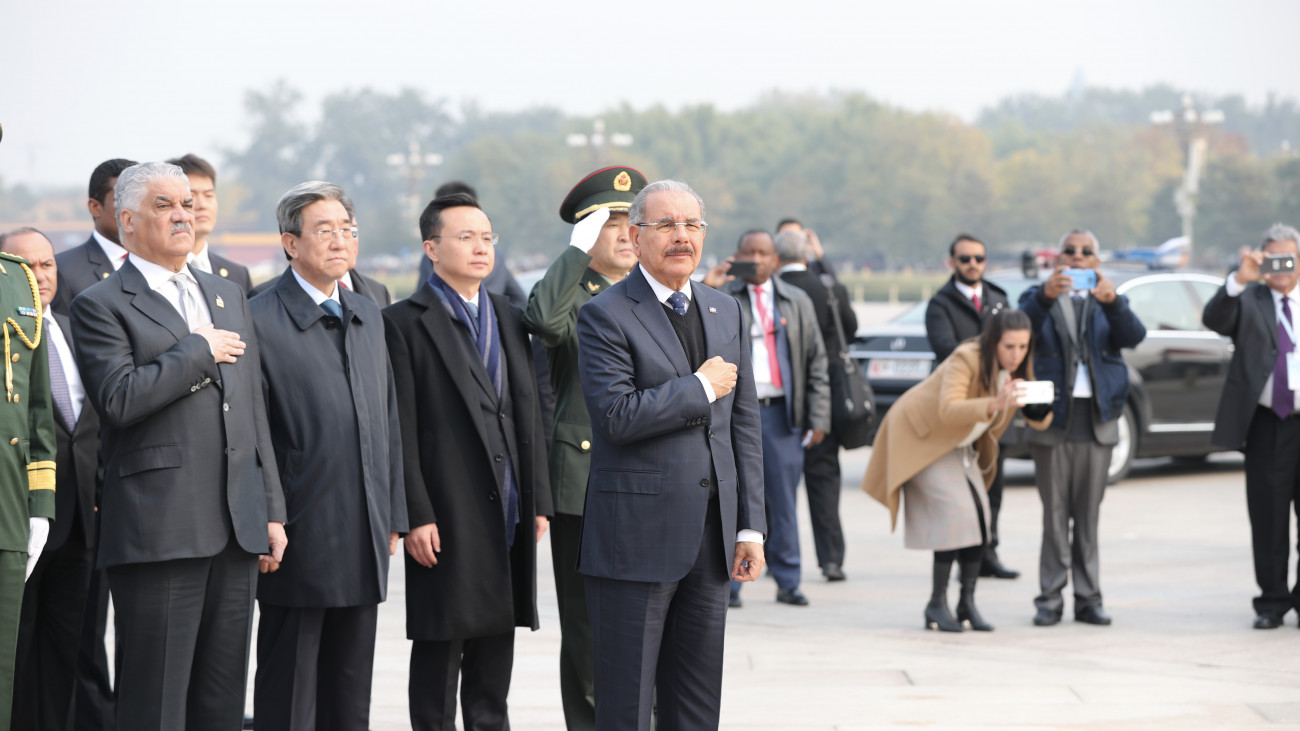 Danilo Medina inicia agenda en República Popular China con ofrenda floral en Monumento Héroes del Pueblo en Plaza de Tiananmén