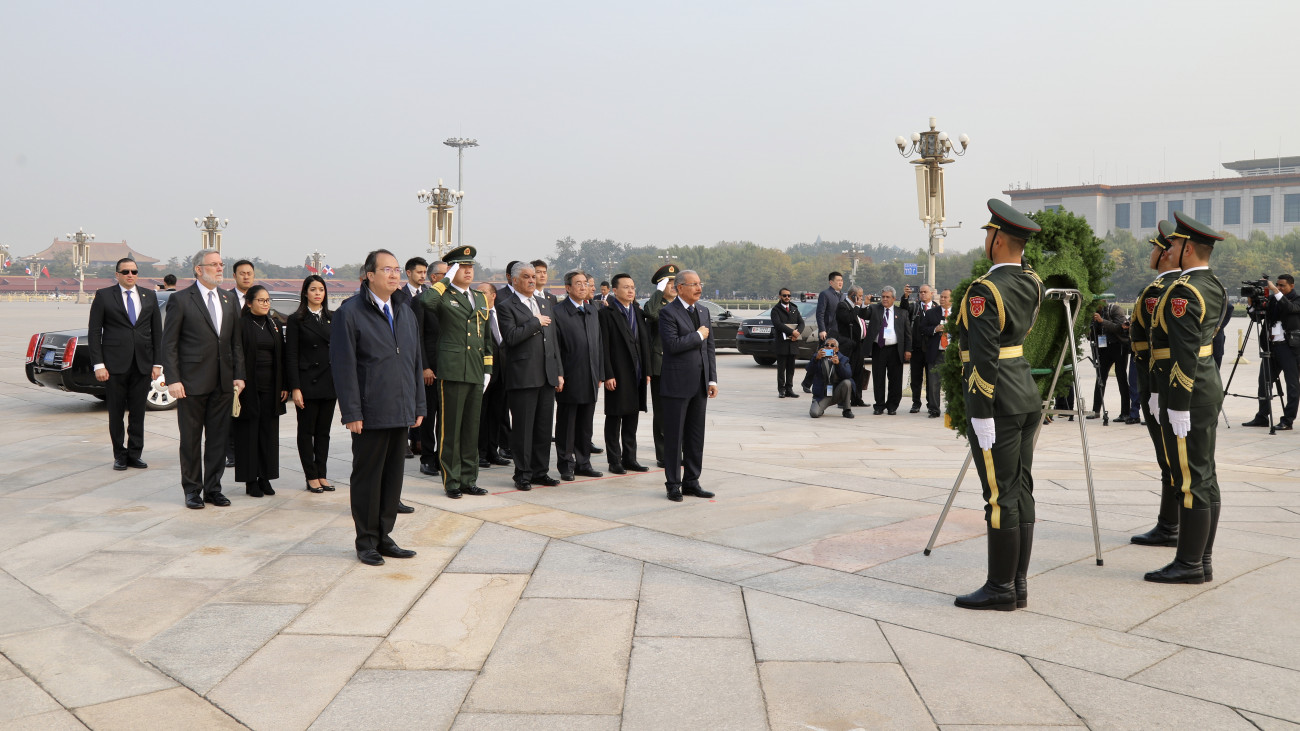 Danilo Medina inicia agenda en República Popular China con ofrenda floral en Monumento Héroes del Pueblo en Plaza de Tiananmén
