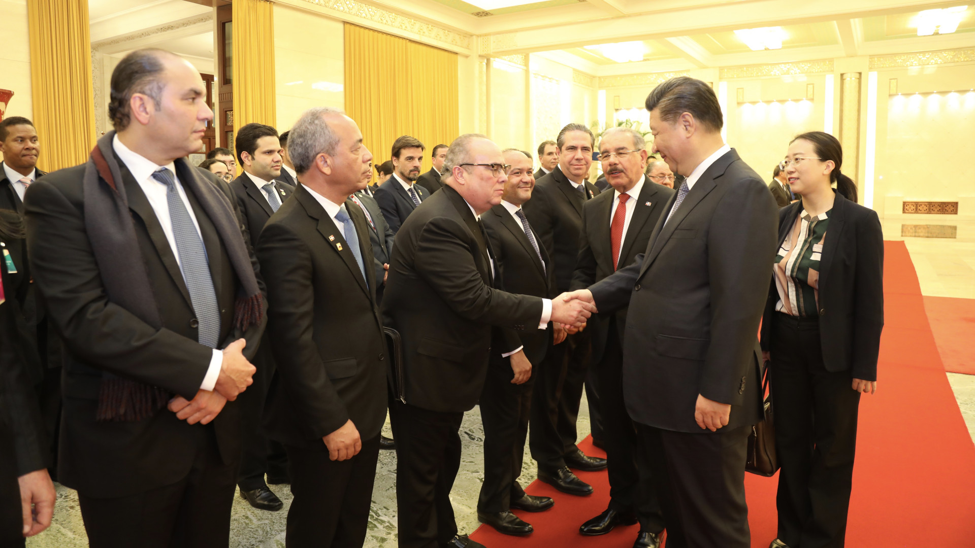 El presidente de la República Popular China, Xi Jinping, saluda delegación oficial de funcionarios dominicanos.