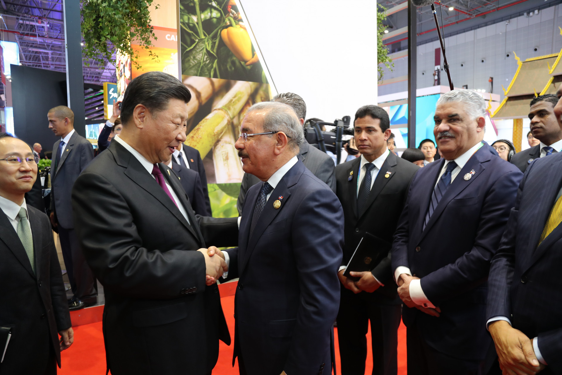 Danilo Medina recibe a homólogo chino, Xi Jinping, en stand de República Dominicana en CIIE