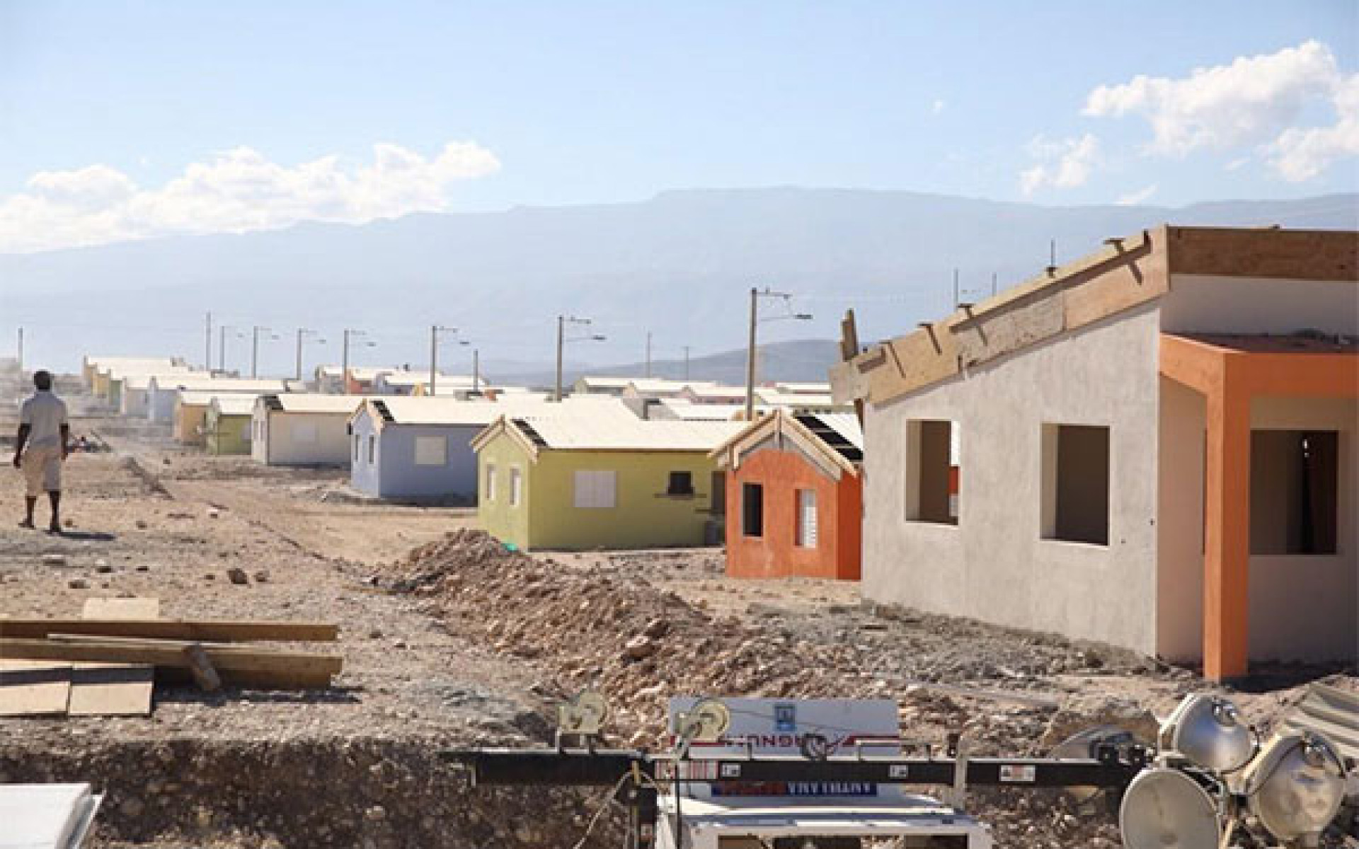 Vista de los trabajos de construcción del proyecto habitacional Boca de Cachón, en Jimaní, con lo que se pondrá fin a los problemas sufridos por más de 500 familias afectadas por los daños provocados por las crecidas del Lago Enriquillo.