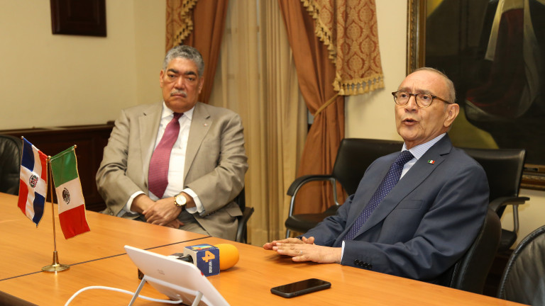 El ministro para Políticas de Integración Regional, Miguel Mejía, durante la visita de cortesía del embajador de México, Carlos Tirado Zavala, en el Salón Los Trinitarios del Palacio Nacional.