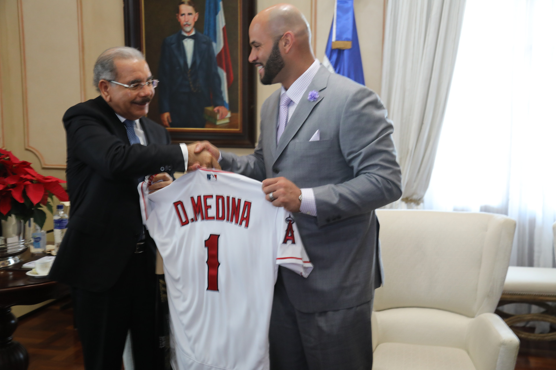 Presidente Danilo Medina recibe al estelar jugador de béisbol de Grandes Ligas, Albert Pujols