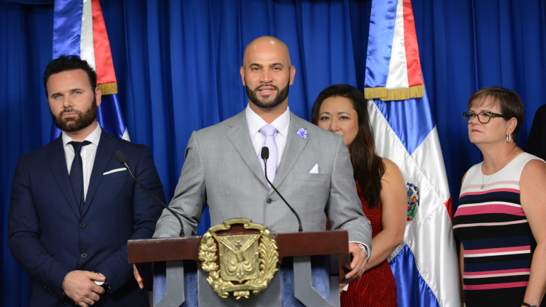 Presidente Danilo Medina recibe al estelar jugador de béisbol de Grandes Ligas, Albert Pujols