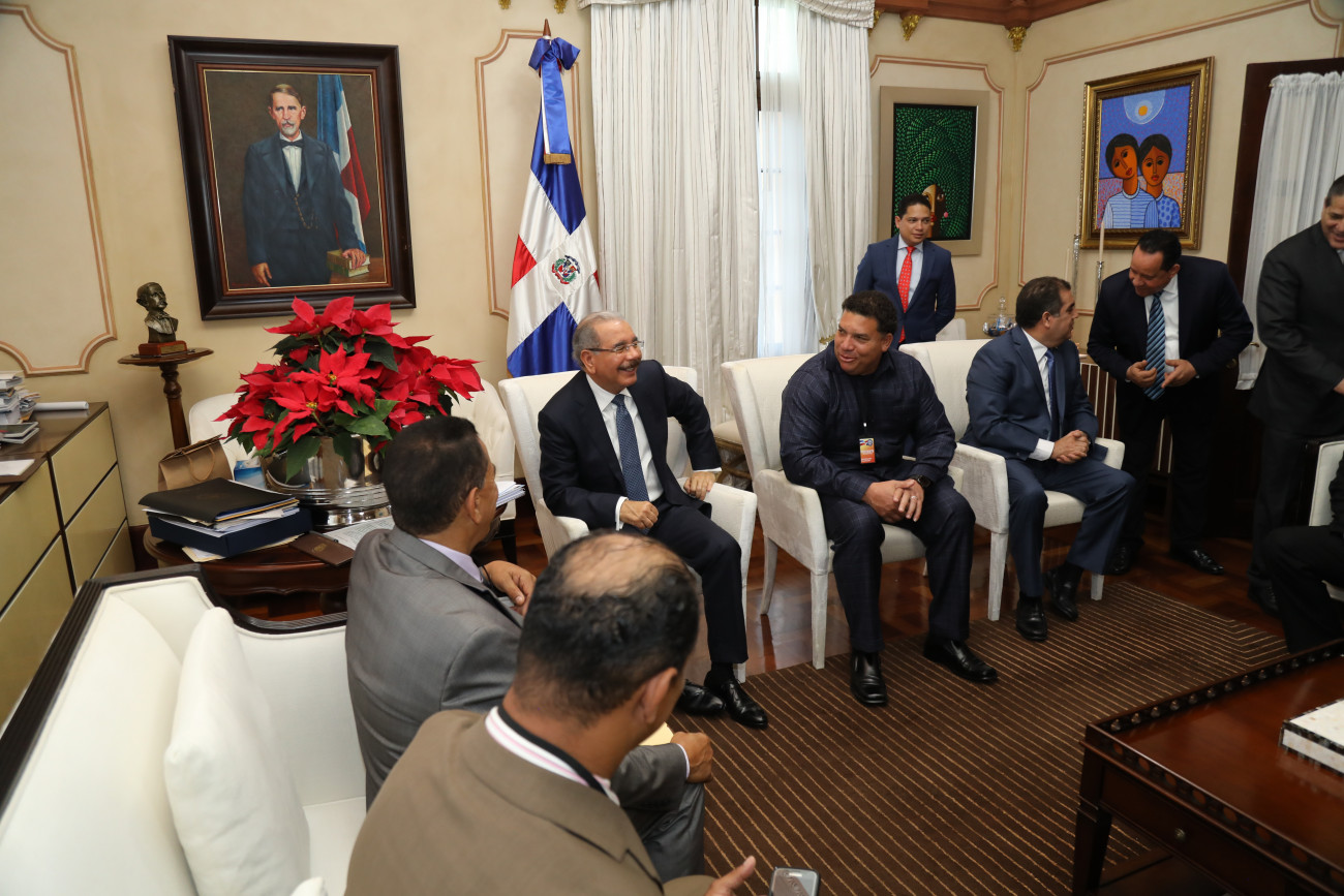 El presidente Danilo Medina durante el encuentro con el jugador dominicano de béisbol de Grandes Ligas, Bartolo Colón, y acompañantes. Foto: Luis Ruiz Tito/Presidencia República Dominicana Enlace noticia: presidencia.gob.do/noticias/presidente-danilo-medina-reci...