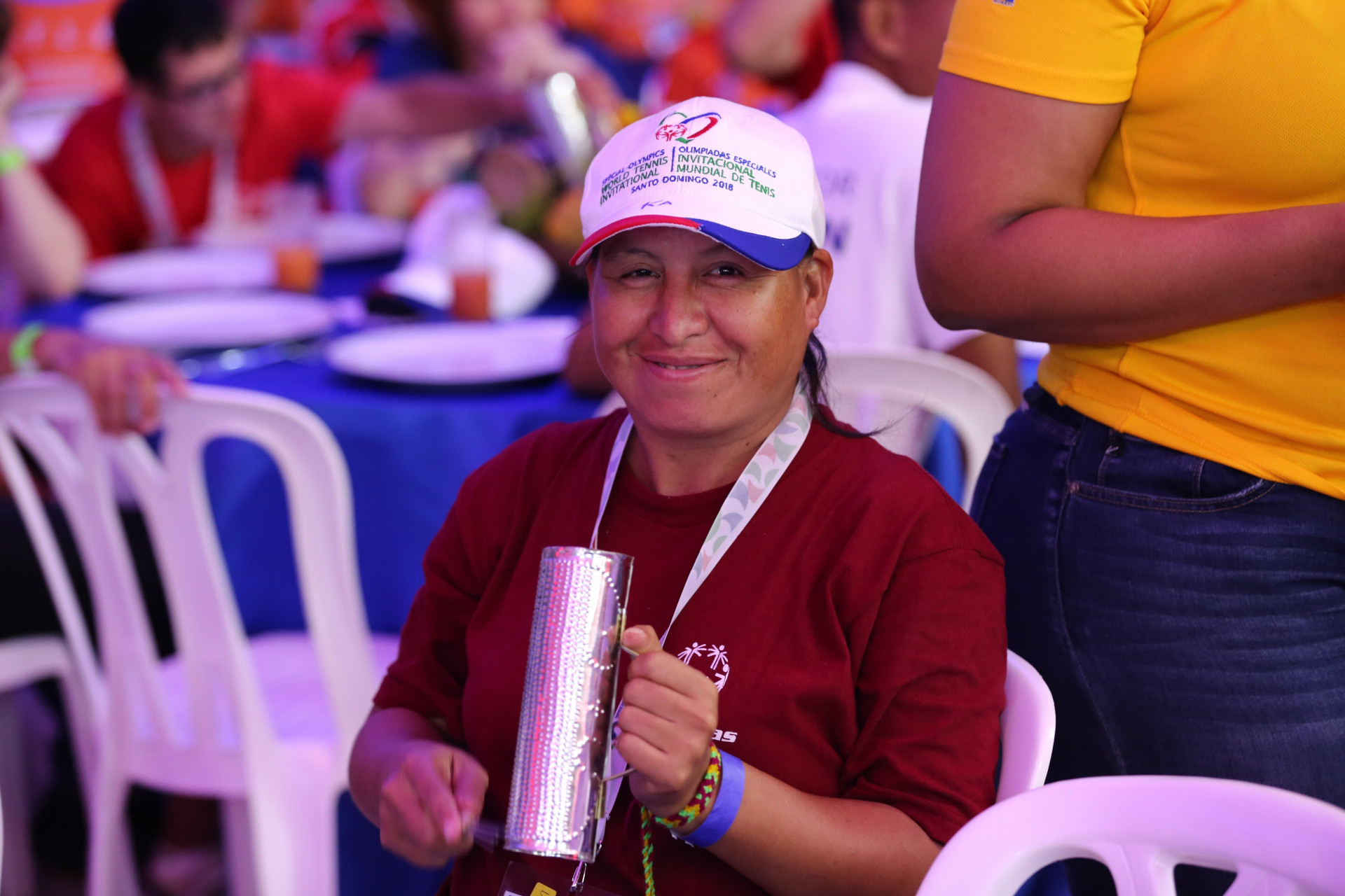 Atletas del Invitacional de Tenis bailan y tocan instrumentos en cena típica dominicana