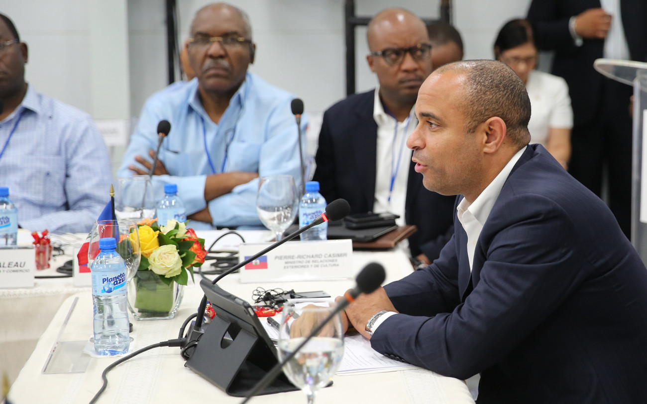 Laurent Lamoth, primer ministro de Haití; durante su participación en la II Reunión de la Comisión Binacional de Alto Nivel República Dominicana-Haití, para abordar temas comerciales, agrícolas, seguridad, migración y medioambiente. Informaron que la próxima reunión del Diálogo de Alto Nivel será efectuada el miércoles 12 de marzo en territorio haitiano.