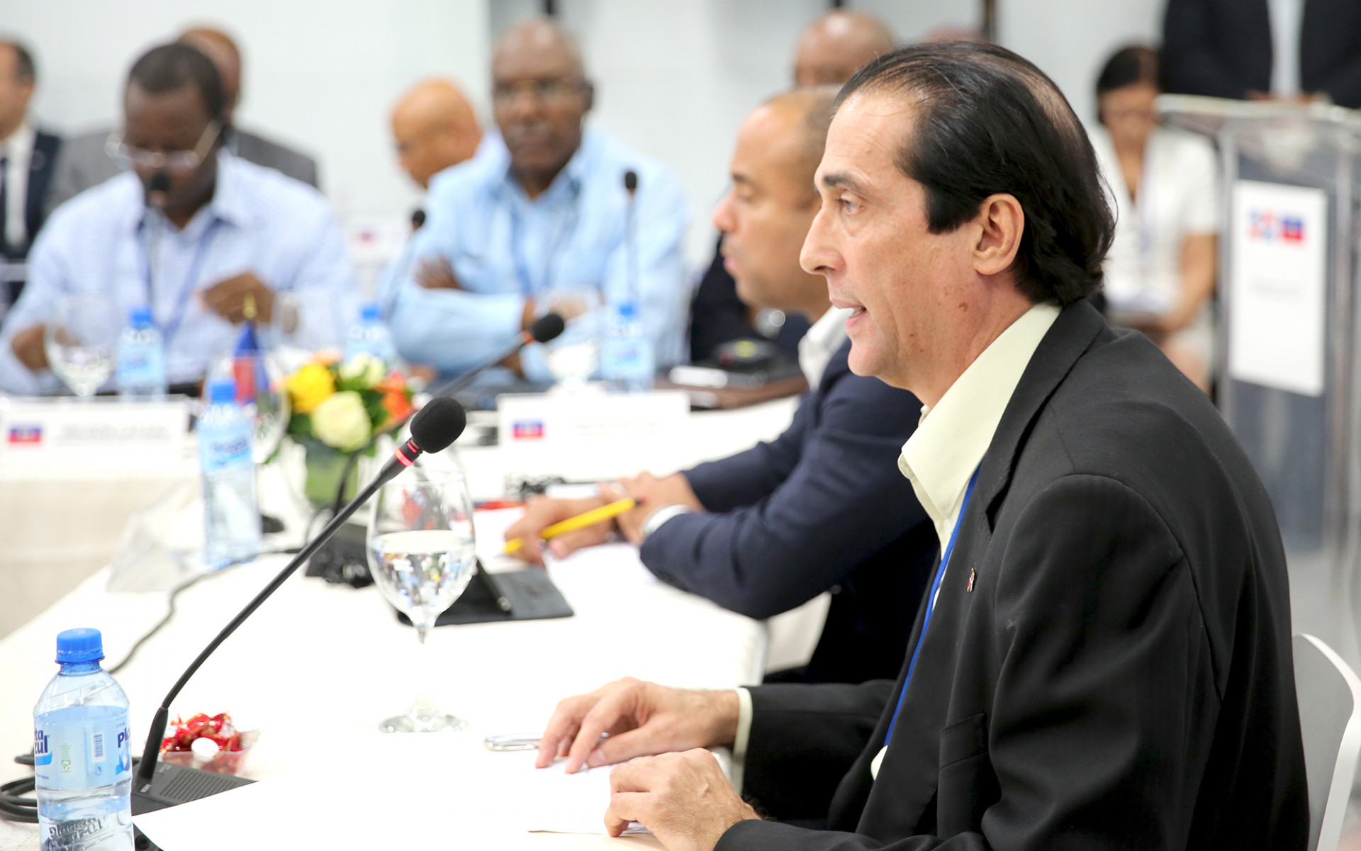 Ministro de la Presidencia Gustavo Montalvo, al momento de hacer uso de la palabra, en la II Reunión de la Comisión Binacional de Alto Nivel República Dominicana - Haití, efectuada en Jimaní.