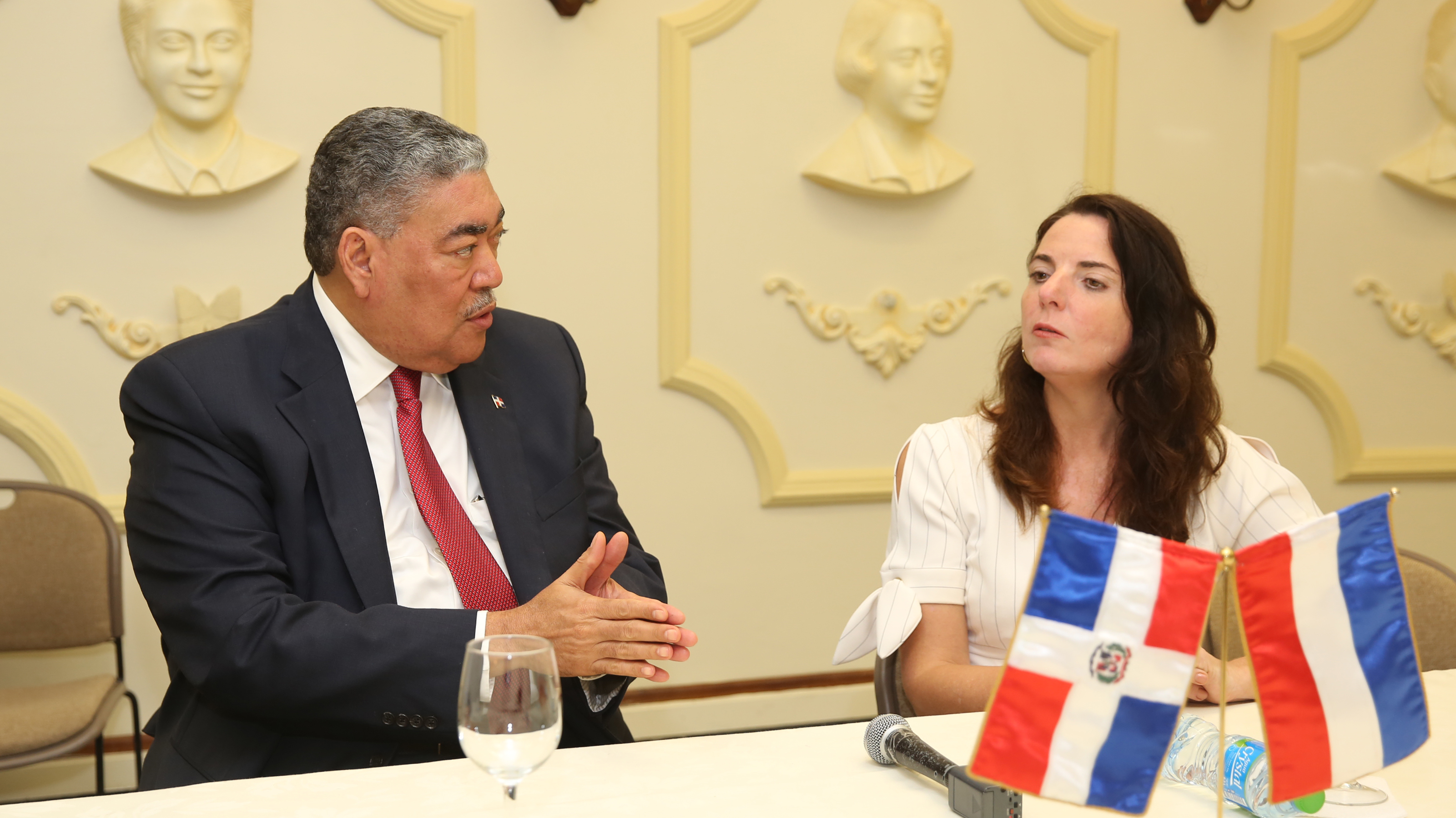 El ministro para Políticas de Integración Regional, Miguel Mejía, recibió la visita de cortesía de la nueva embajadora de los Países Bajos, Annemieke Verrijp, durante el encuentro, que tuvo lugar en el despacho del ministro en el Palacio Nacional. Foto: Presidencia República Dominicana Enlace noticia: presidencia.gob.do/noticias/ministro-politicas-integracio...