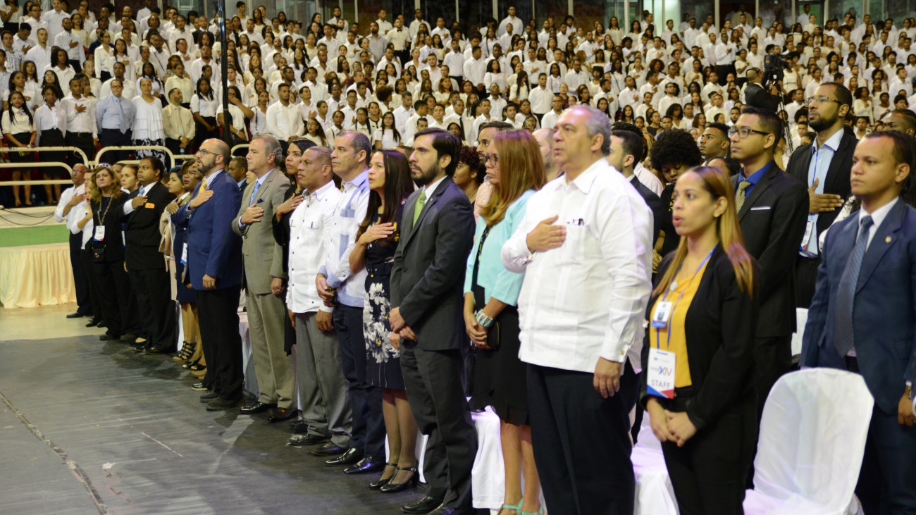 Acto XIV Graduación Programa Inglés de Inmersión para la Competitividad 2018, del MESCyT, encabezado por el presidente Danilo Medina, en el Palacio de los Deportes Virgilio Travieso Soto, del Centro Olímpico Juan Pablo Duarte.