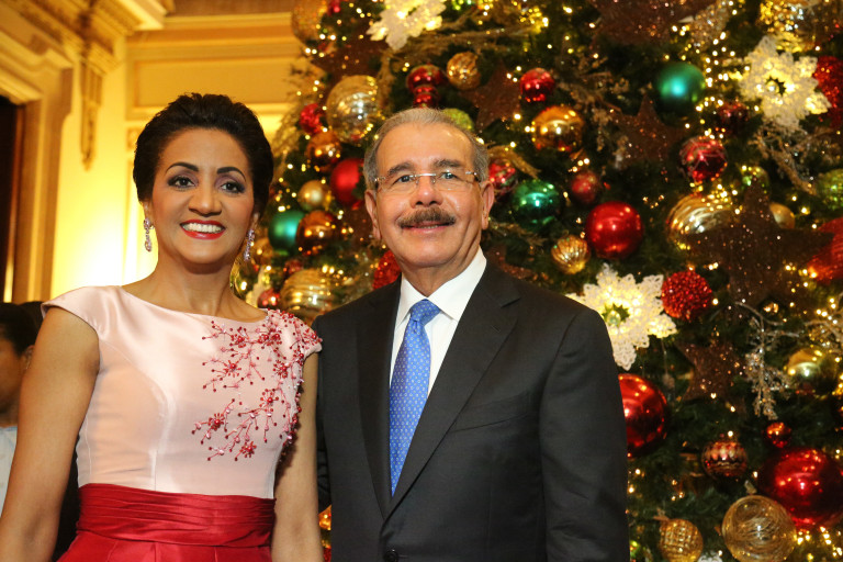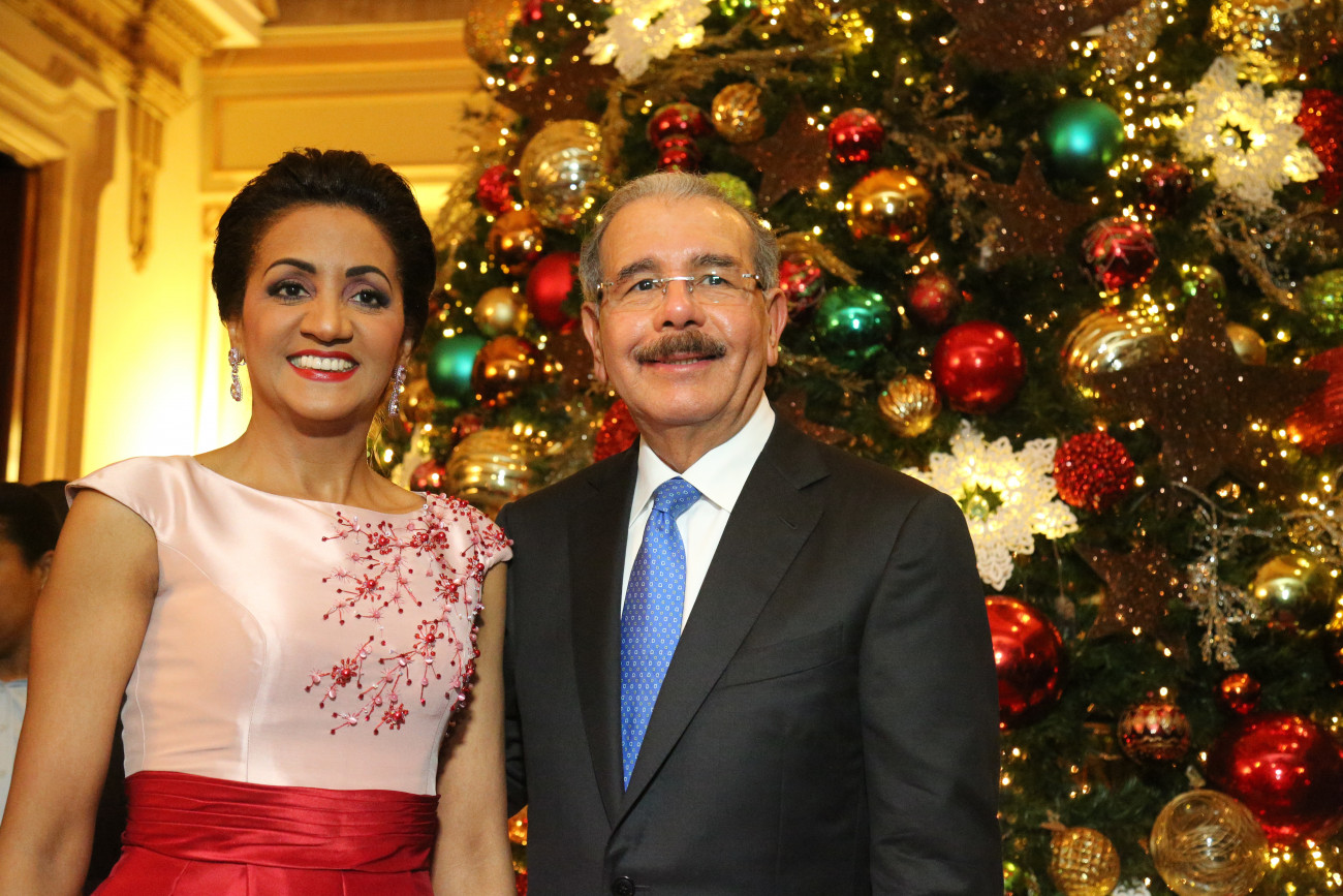 Presidente Danilo Medina y primera dama, Cándida Montilla de Medina, encienden árbol de Navidad y jardines del Palacio Nacional