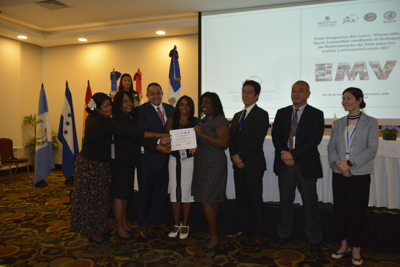 El director del Instituto Agrario Dominicano, Emilio Toribio Olivo, junto a participantes del curso: “Desarrollo Rural Sostenible mediante el Enfoque de Mejoramiento de Vida para los países de Latinoamérica”, auspiciado por la Agencia de Cooperación Internacional de Japón (JICA).