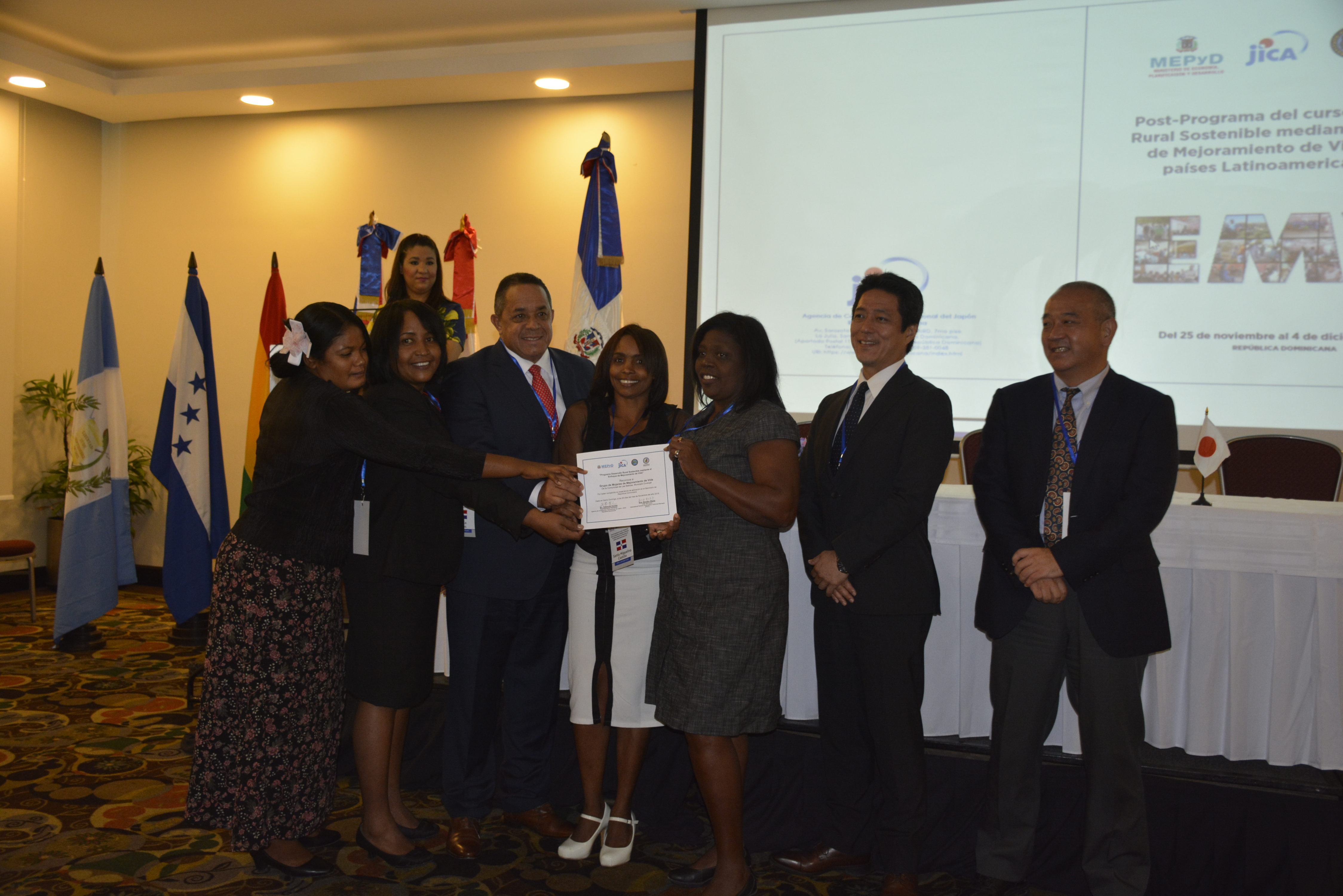 El director del Instituto Agrario Dominicano, Emilio Toribio Olivo, junto a participantes del curso: “Desarrollo Rural Sostenible mediante el Enfoque de Mejoramiento de Vida para los países de Latinoamérica”, auspiciado por la Agencia de Cooperación Internacional de Japón (JICA).