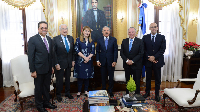 Danilo Medina recibe en su despacho a la presidenta del Consejo Mundial de Viajes y Turismo, Gloria Guevara