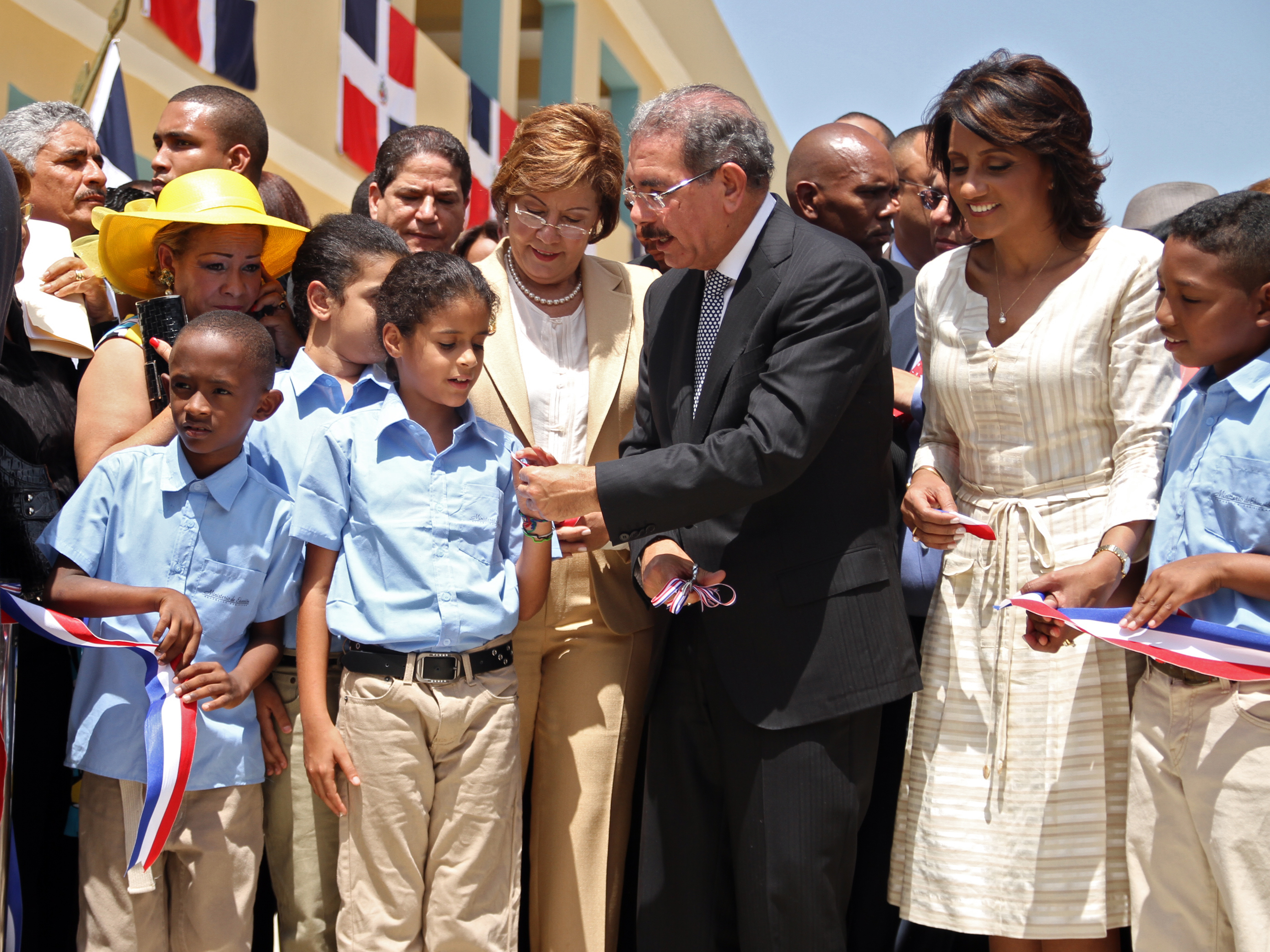 El presidente Danilo Medina corta la cinta para inaugurar el nuevo plantel en el inicio del año escolar