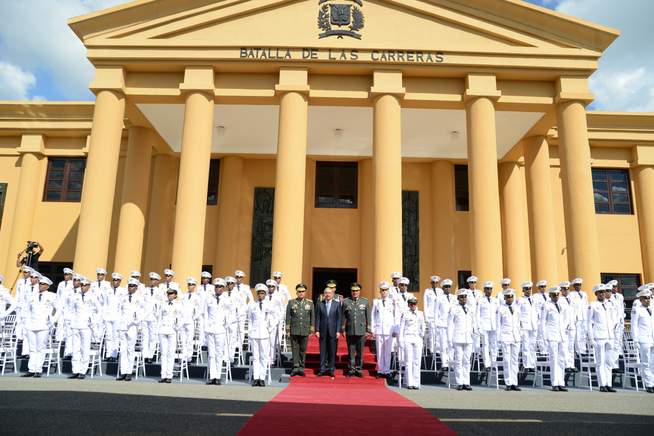 El presidente Danilo Medina encabezó la graduación de la Quincuagésima Séptima Promoción Ordinaria de Cadetes “General Pedro Alejandrino Pina”, de la Academia Militar Batalla de las Carreras, en la que 51 cadetes, 49 hombres y 2 mujeres, egresan como licenciados en Ciencias Militares. Foto: Presidencia República Dominicana Enlace noticia: presidencia.gob.do/noticias/presidente-danilo-medina-enca...