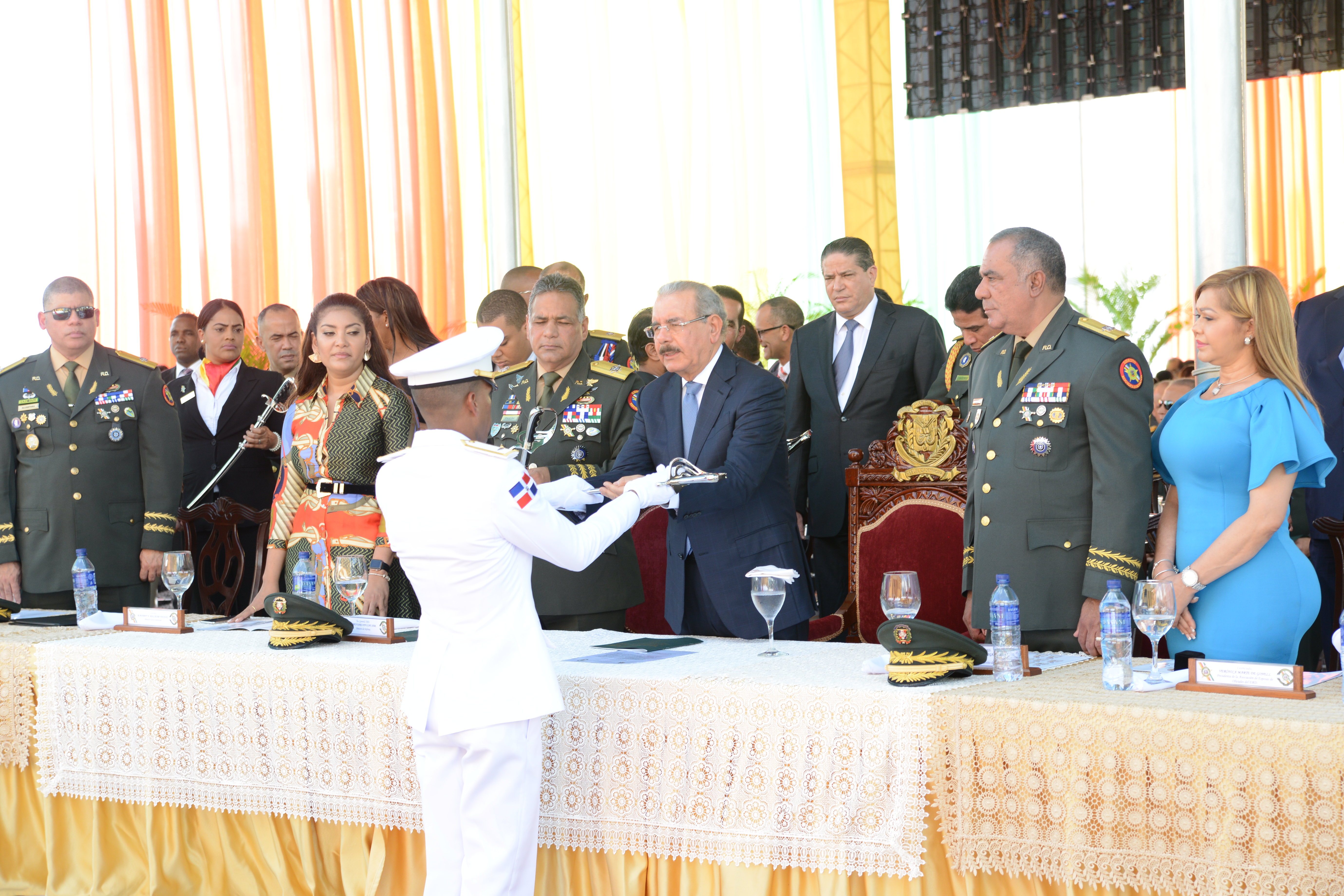 Ceremonia de la Quincuagésima Séptima Promoción Ordinaria de Cadetes “General Pedro Alejandrino Pina”, de la Academia Militar Batalla de las Carreras, encabezada por el presidente Danilo Medina y altos mandos militares y policiales.