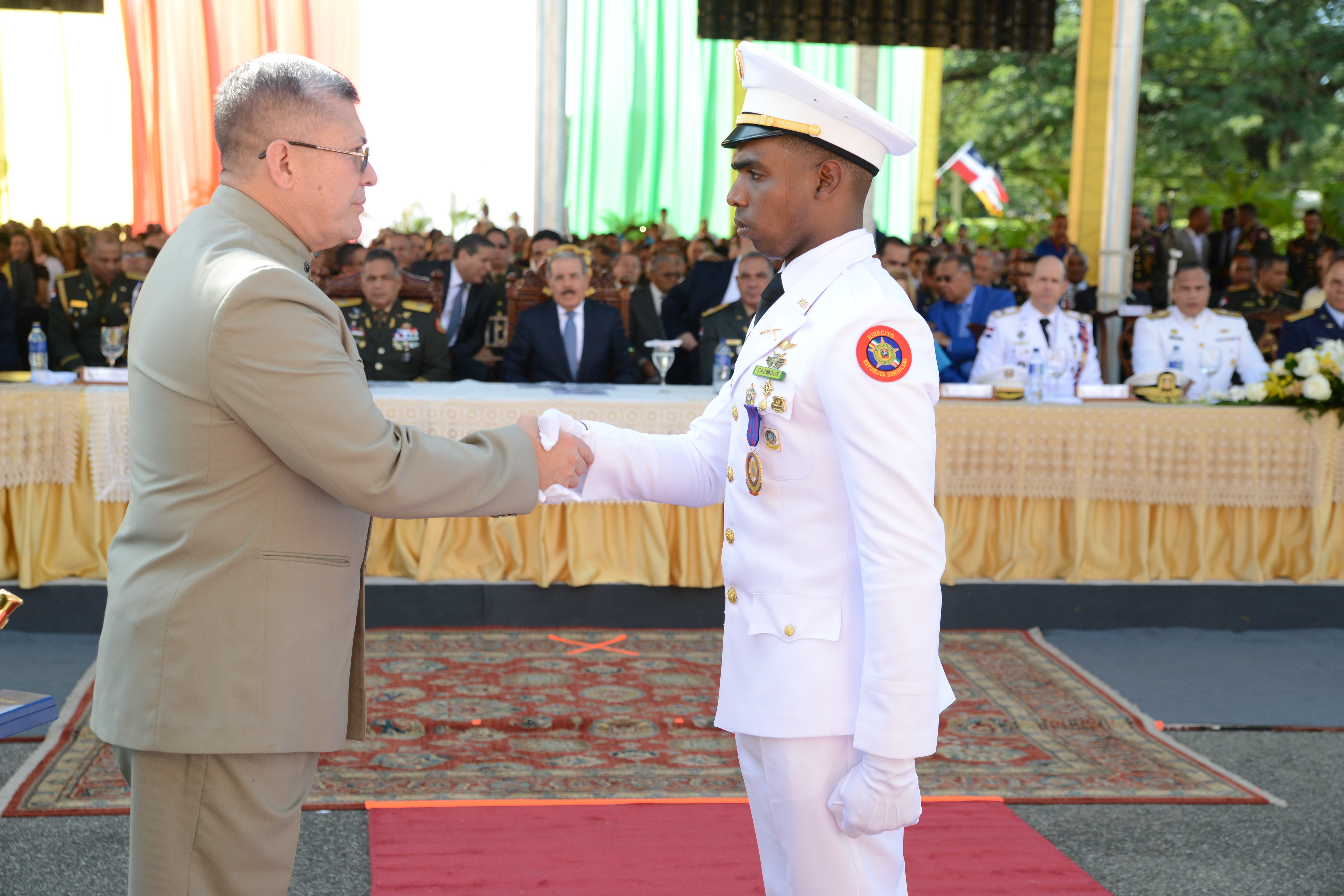 Ceremonia de la Quincuagésima Séptima Promoción Ordinaria de Cadetes “General Pedro Alejandrino Pina”, de la Academia Militar Batalla de las Carreras, encabezada por el presidente Danilo Medina y altos mandos militares y policiales. Foto: Presidencia República Dominicana Enlace noticia: presidencia.gob.do/noticias/presidente-danilo-medina-enca...