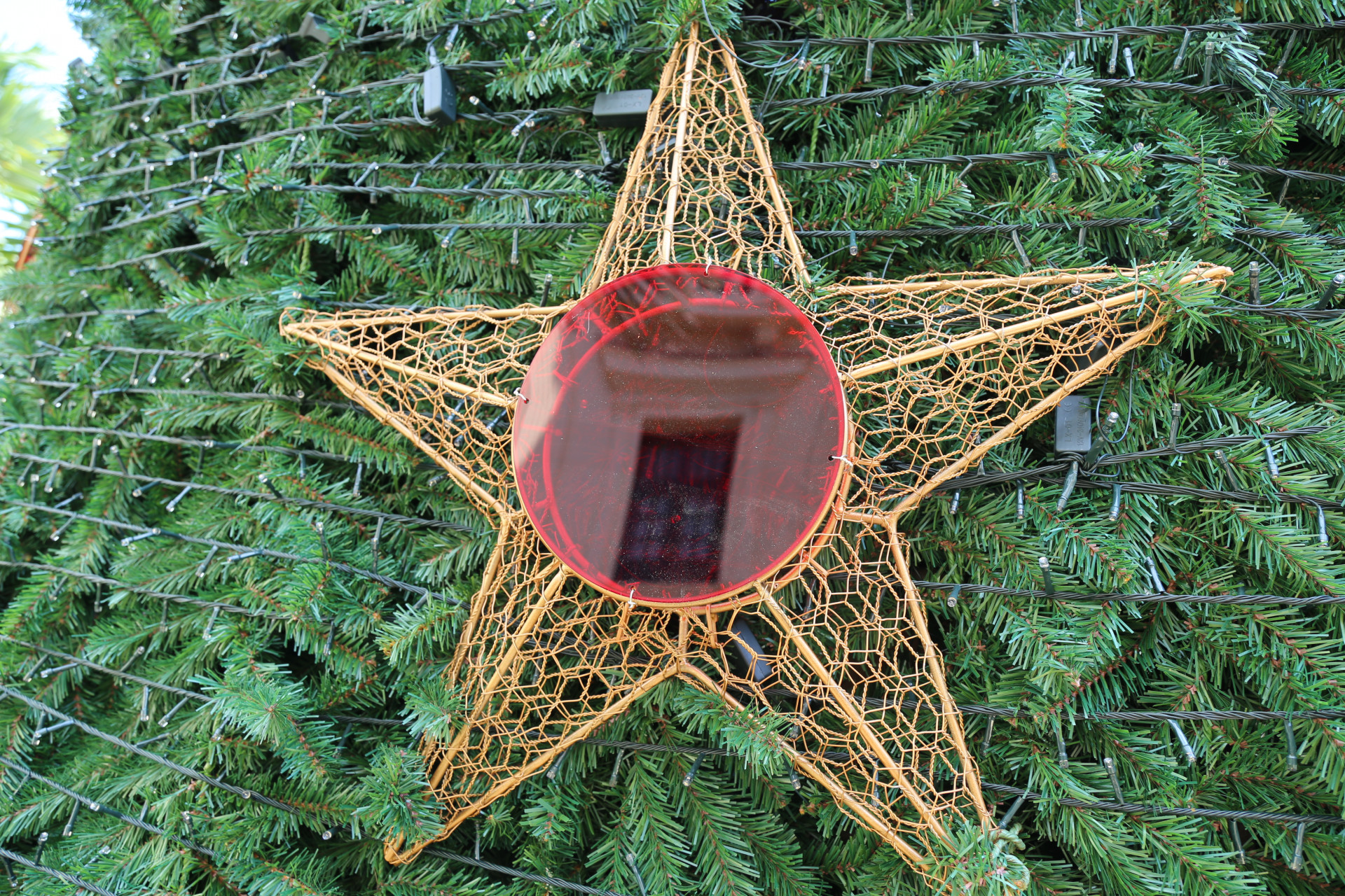 Greybby citó que los materiales reusados, tales como mallas de rejas inservibles, fueron recuperadas y pintadas; y la micas desechadas, funcionan como centro.