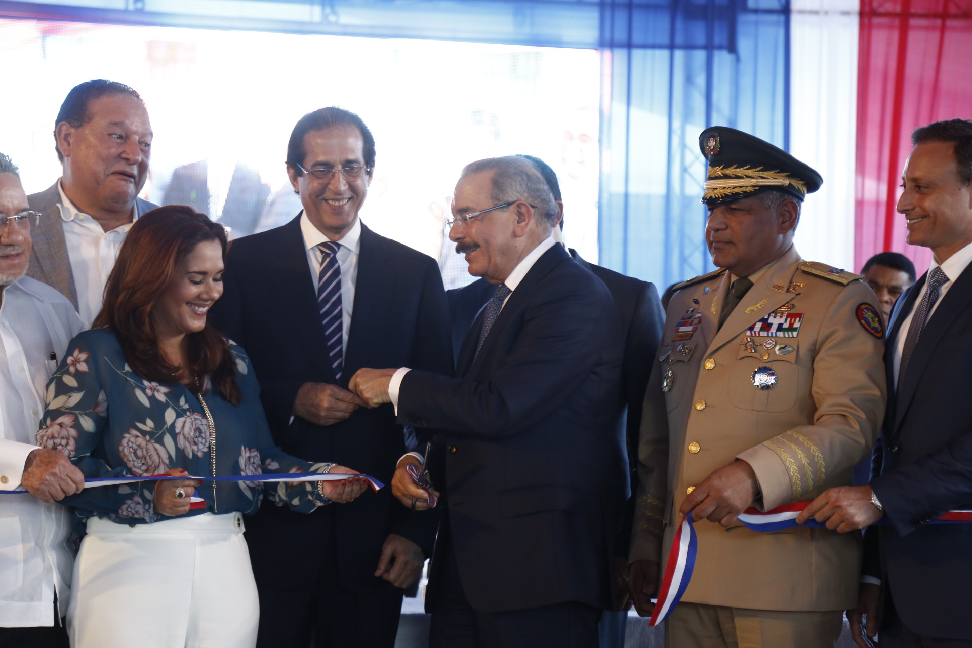 El presidente Danilo Medina corta la cinta inaugural, para dejar en funcionamiento del Sistema Nacional de Atención a Emergencias y Seguridad 9-1-1, en Higüey, provincia La Altagracia.