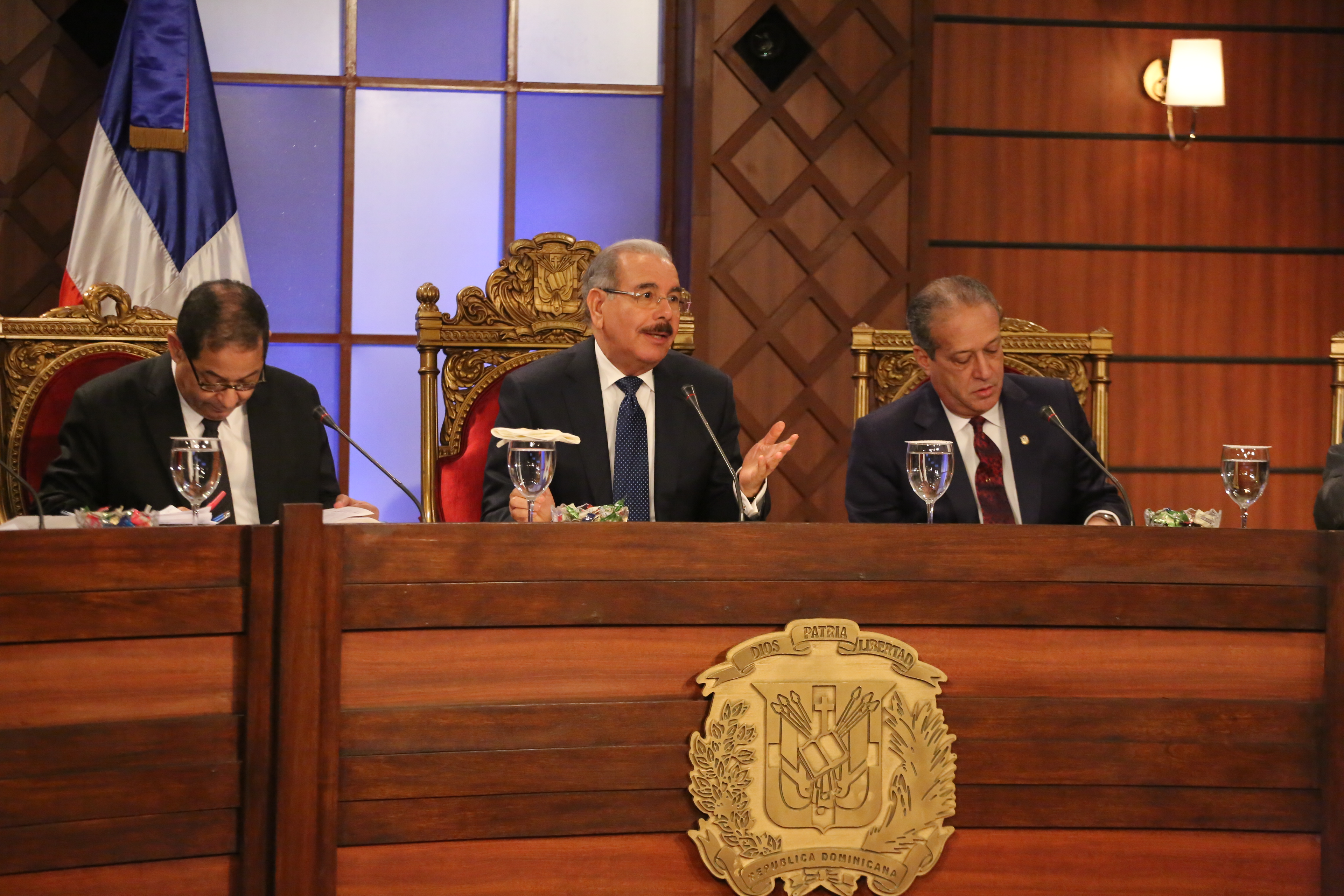 El Consejo Nacional de la Magistratura (CNM), encabezado por el presidente de la República, Danilo Medina, durante las vistas públicas para la escogencia de las vacantes del Tribunal Constitucional, realizada en el Salón Verde del Palacio Nacional.