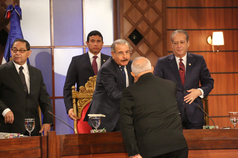 El Consejo Nacional de la Magistratura (CNM), encabezado por el presidente de la República, Danilo Medina, durante las vistas públicas para la escogencia de las vacantes del Tribunal Constitucional, realizada en el Salón Verde del Palacio Nacional.