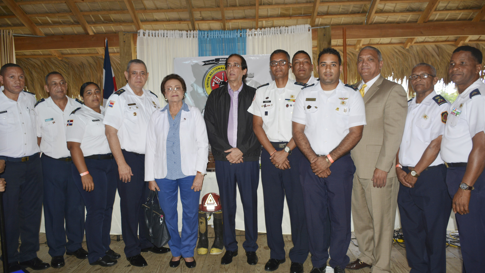 El ministro de la Presidencia, Gustavo Montalvo; gobernadora de Mons. Nouel, señora Mirian Abreu; el presidente de la Unión Nacional de Bomberos, coronel Rafael Javier Bueno, el viceministro de Interior y Policía, Geovanny Tejada; el secretario de la Unabomb, Medardo Quezada y otros miembros del Cuerpo de Bomberos presentes durante la actividad.