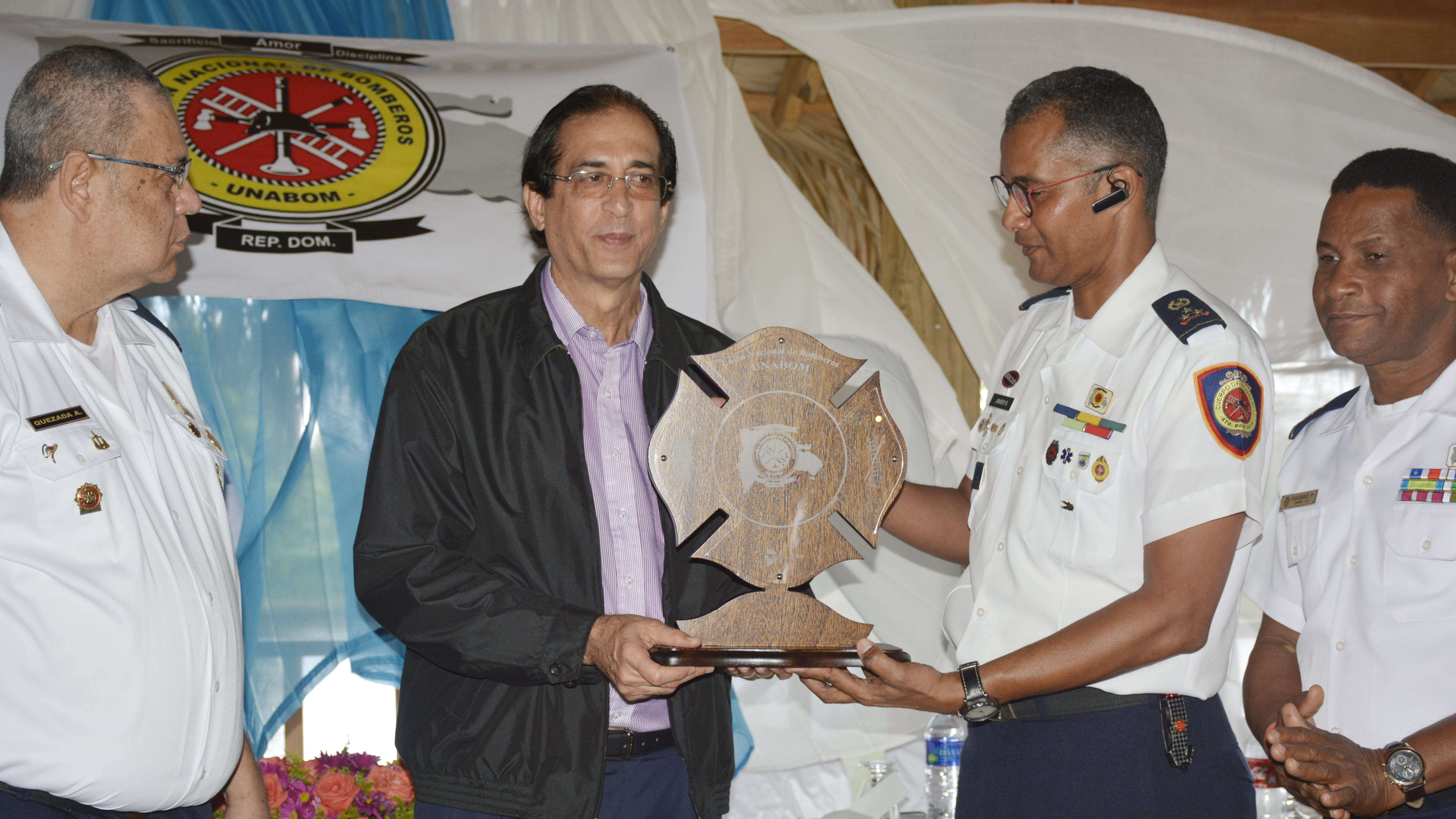 Durante la actividad, el presidente de la Unión Nacional de Bomberos, coronel Rafael Javier Bueno, entregó al ministro de la Presidencia una “Cruz de Malta”, símbolo de la institución a nivel internacional, en reconocimiento a los aportes de éste con la institución a través del Sistema 911.