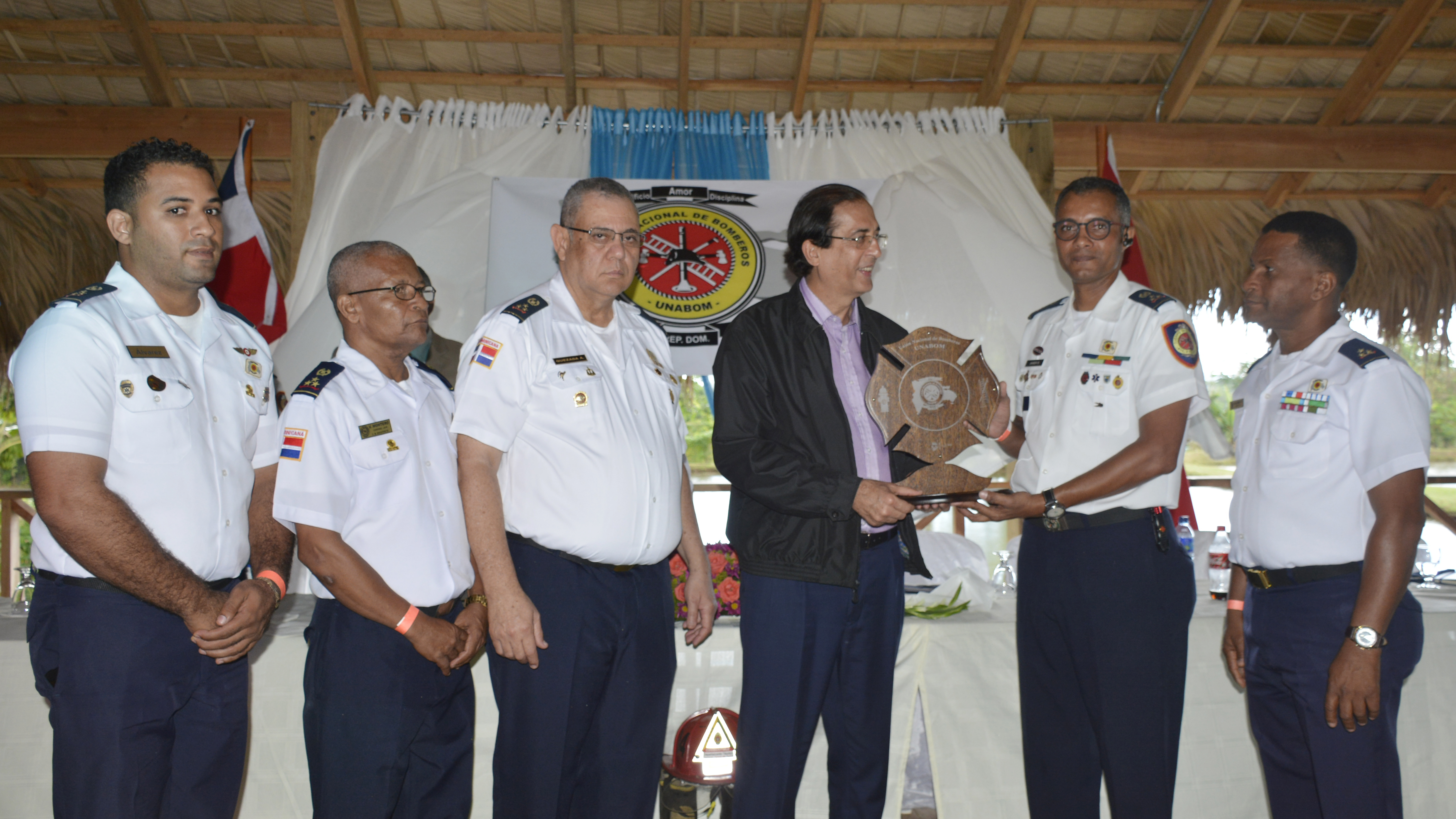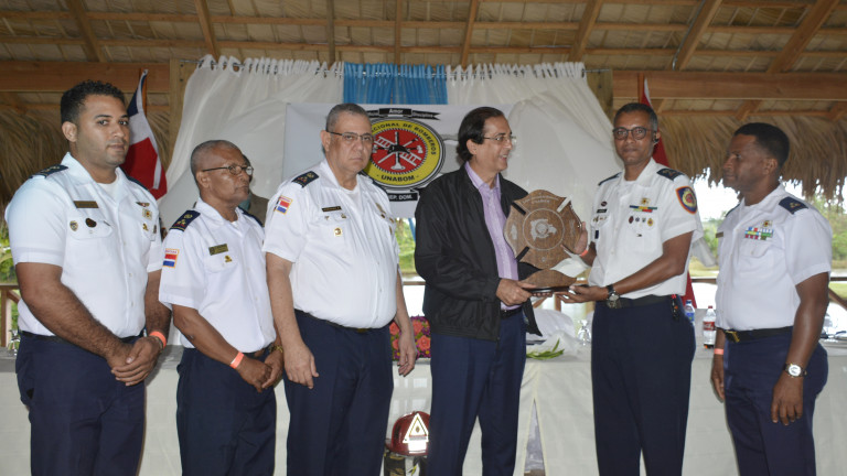 Durante la actividad, el presidente de la Unión Nacional de Bomberos, coronel Rafael Javier Bueno, entregó al ministro de la Presidencia una “Cruz de Malta”, símbolo de la institución a nivel internacional, en reconocimiento a los aportes de éste con la institución a través del Sistema 911.