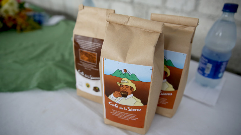 Muestra de empaque de Café de la Sierra, producido por la Cooperativa de Productores y Productoras de la Sierra de Neyba.