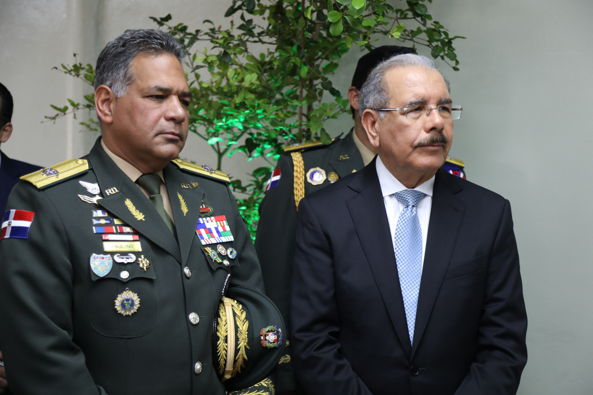 El presidente Danilo Medina, y el ministro de Defensa, teniente general Rubén Darío Paulino Sem, durante el evento.